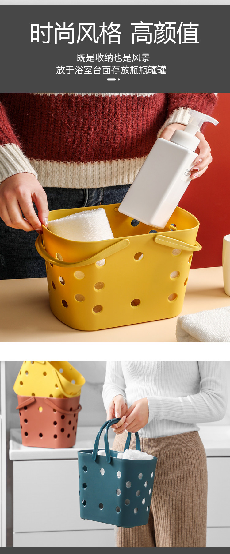 塑料洗澡篮子手提镂空沐浴篮宿舍浴室洗漱用品收纳篮韩国可爱浴筐