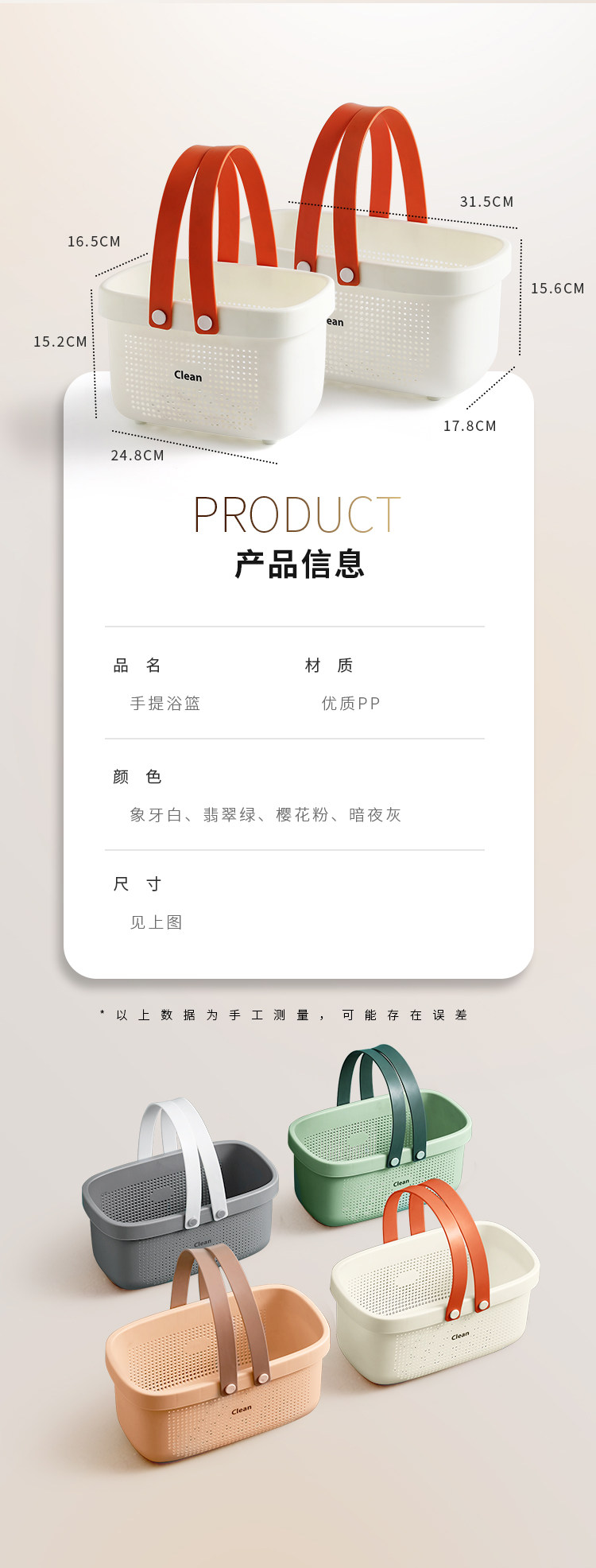手提式洗澡篮洗漱框收纳篮子卫生间洗浴沐浴室家用杂物野餐游泳筐