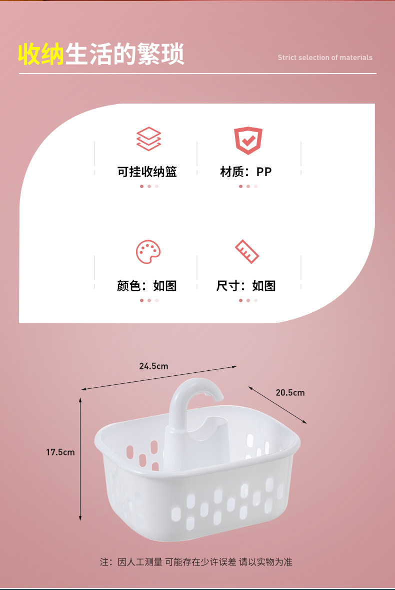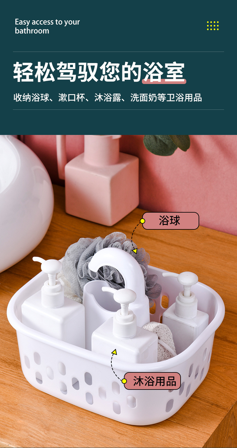 手提洗澡篮子洗浴收纳筐澡篮开学季学生宿舍洗漱沐浴篮筐挂式浴筐