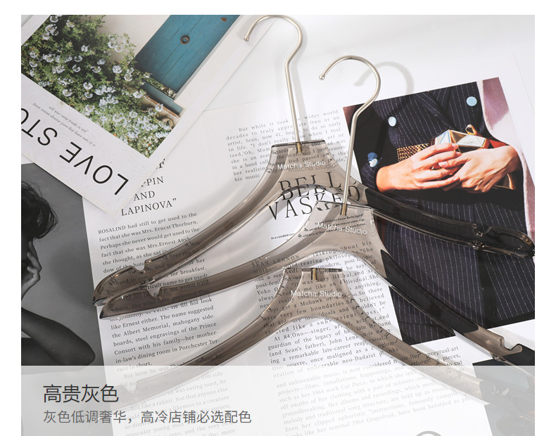 服装店衣架裤架肩宽加粗LOGO无痕衣架女装防滑透明亚克力衣架批发