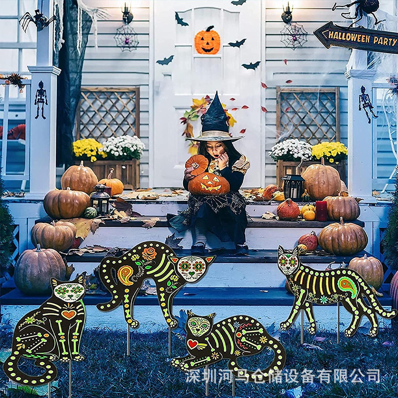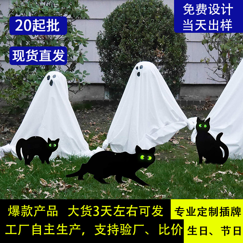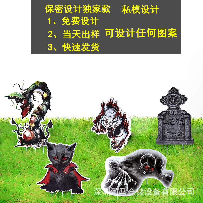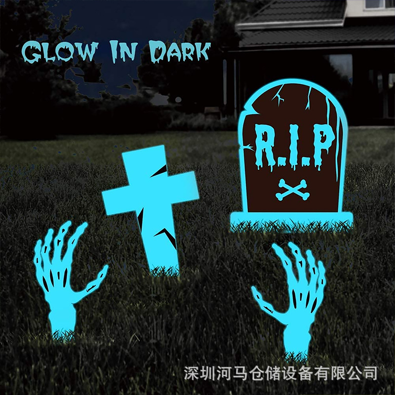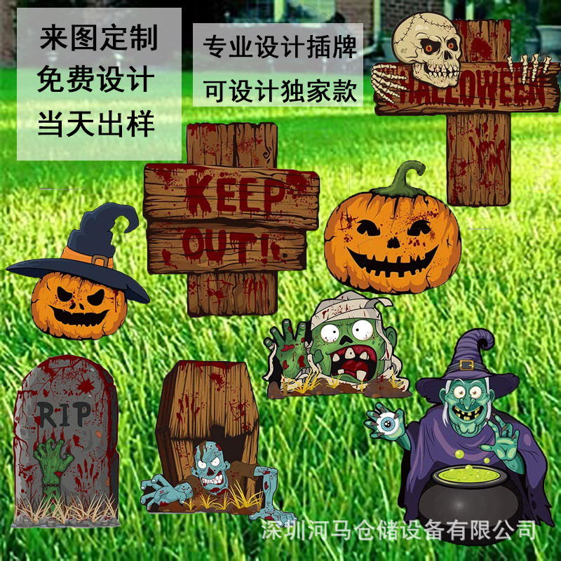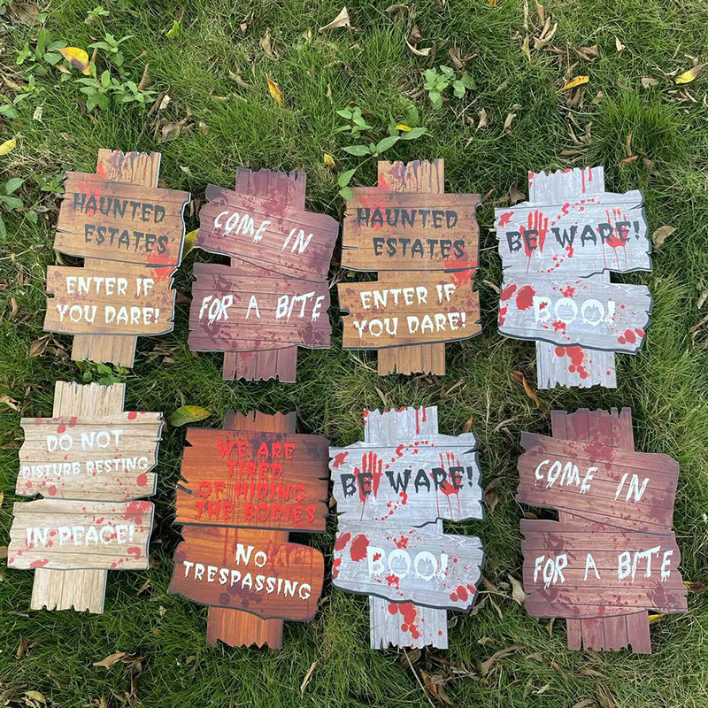 跨境2022万圣节地插牌仿真木牌喋血牌院子的装饰夜光发光庭院插牌