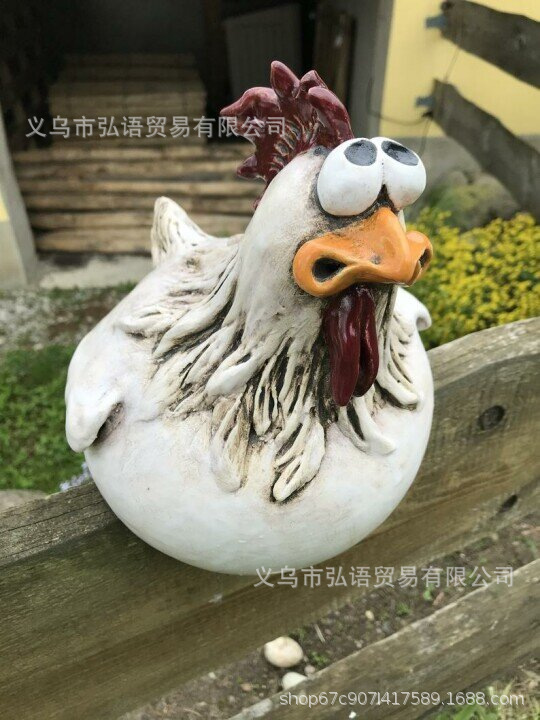 2021跨境新品大母鸡大眼鸡树脂工艺品摆件庭院装饰牧场家居微景观