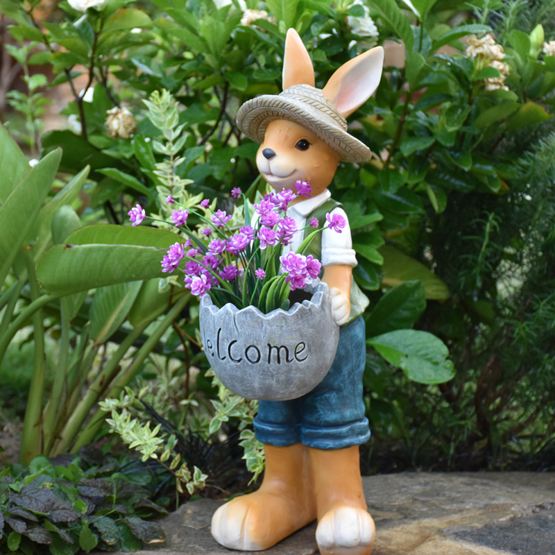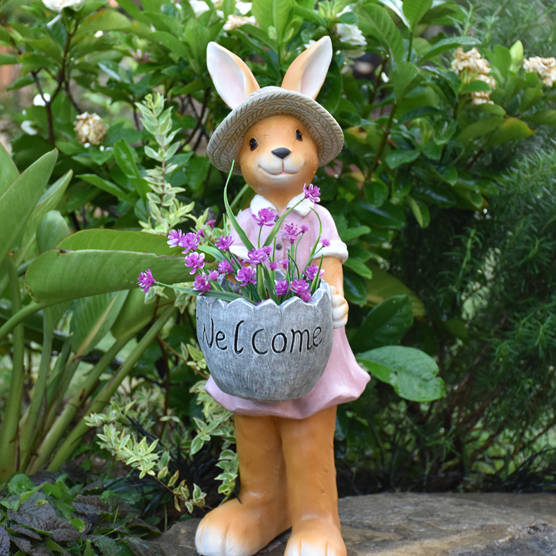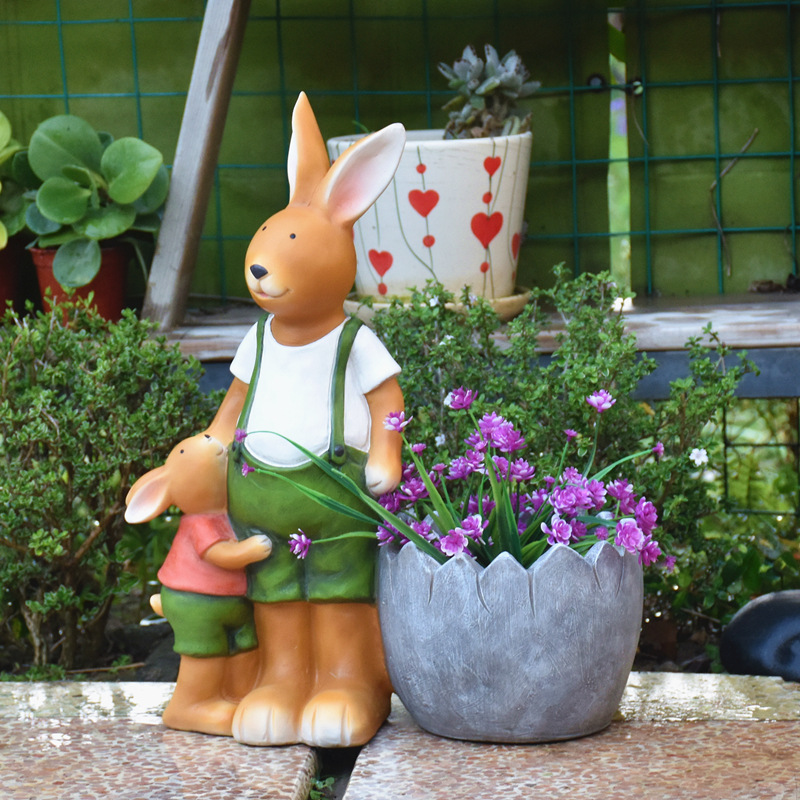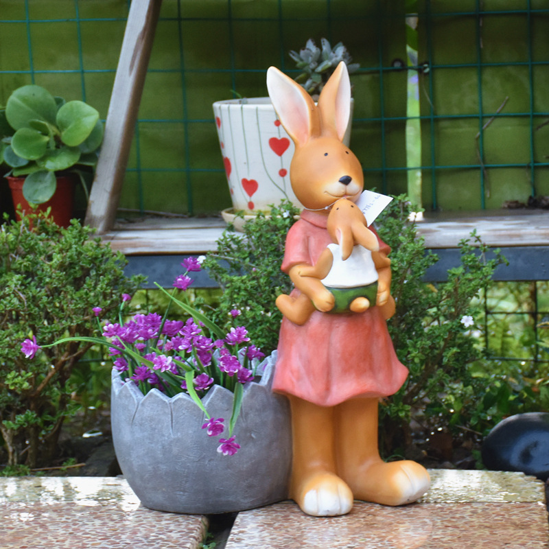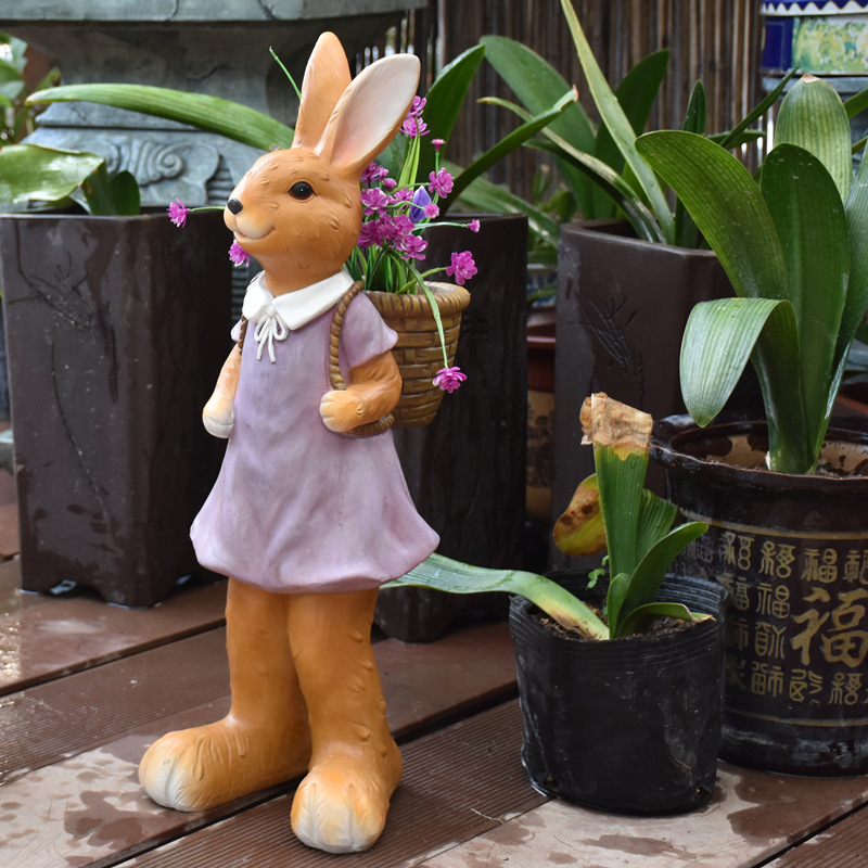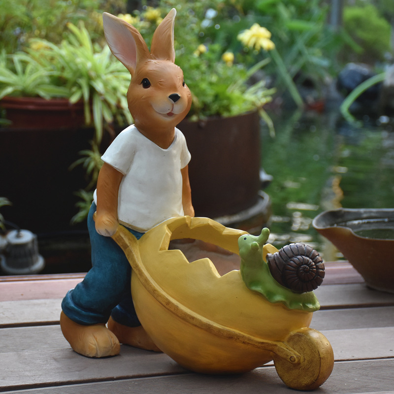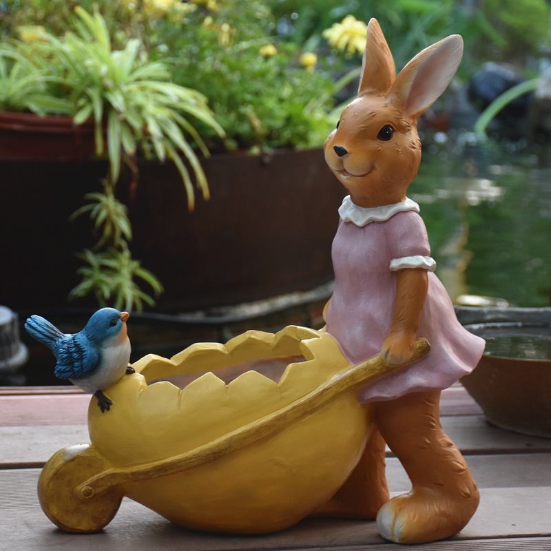 卡通兔子花盆花器推车庭院阳台露台空中乡村花园装饰创意树脂摆件