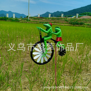 新款卡通青蛙骑车金属风车动物摩托车铁艺庭院花园装饰厂家批发