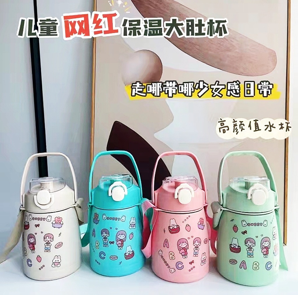 网红大肚子保温杯大容量卡通儿童保温水壶304不锈钢保温水杯定 制