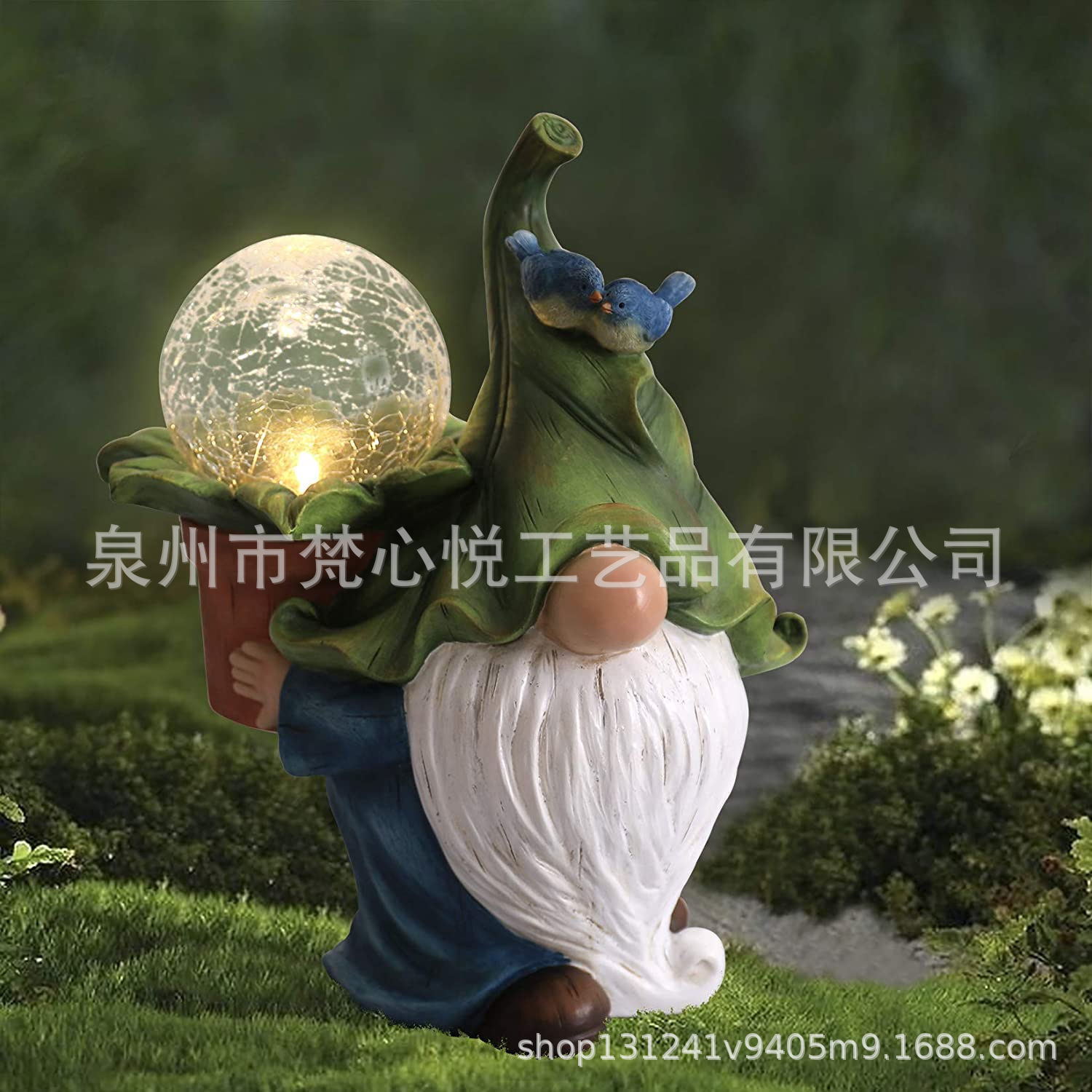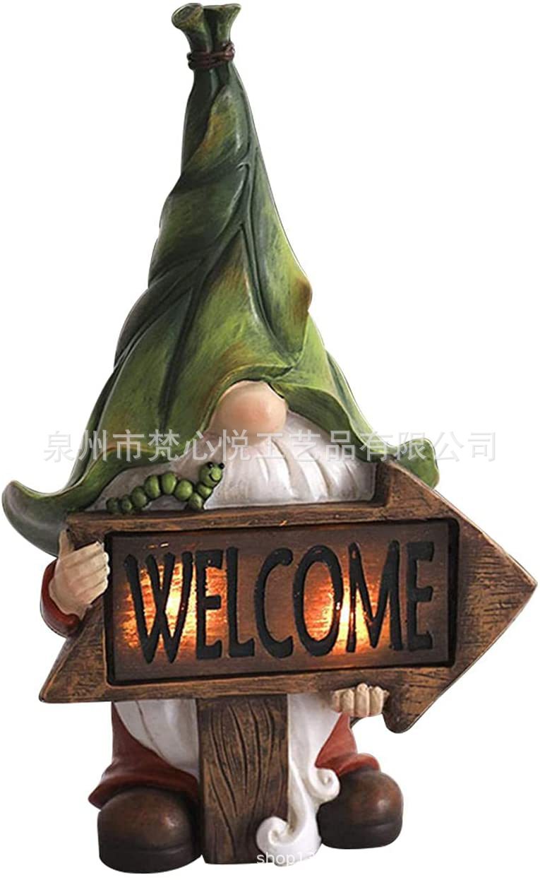 跨境新品太阳能树脂灯户外花园摆件小矮人地精工艺品草坪庭院装饰