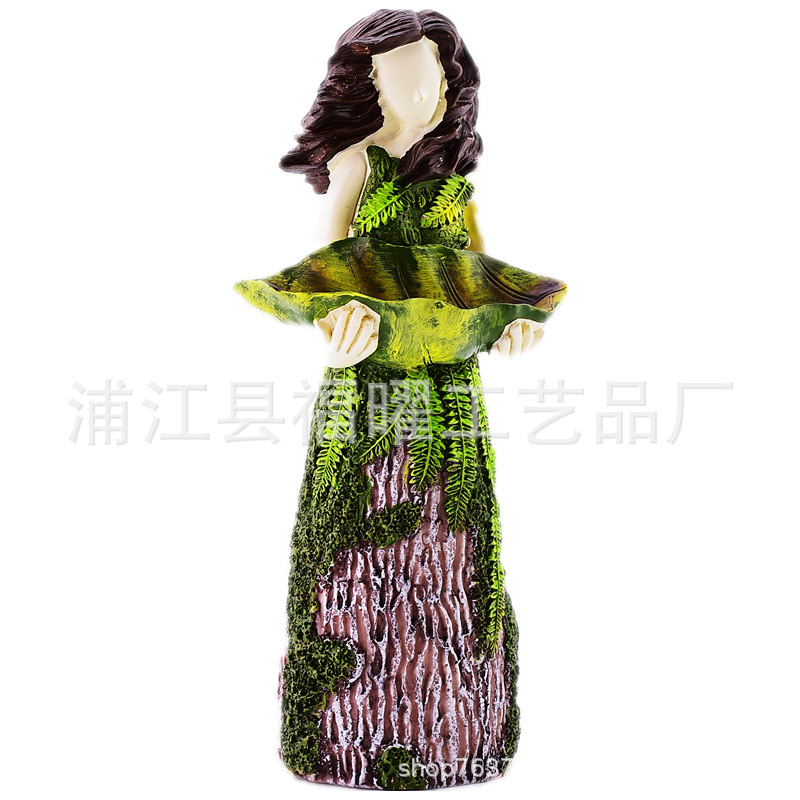 跨境森林女孩喂鸟器树脂工艺品户外庭院花园雕像喂鸟器树脂摆件