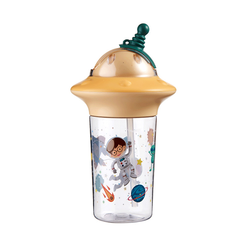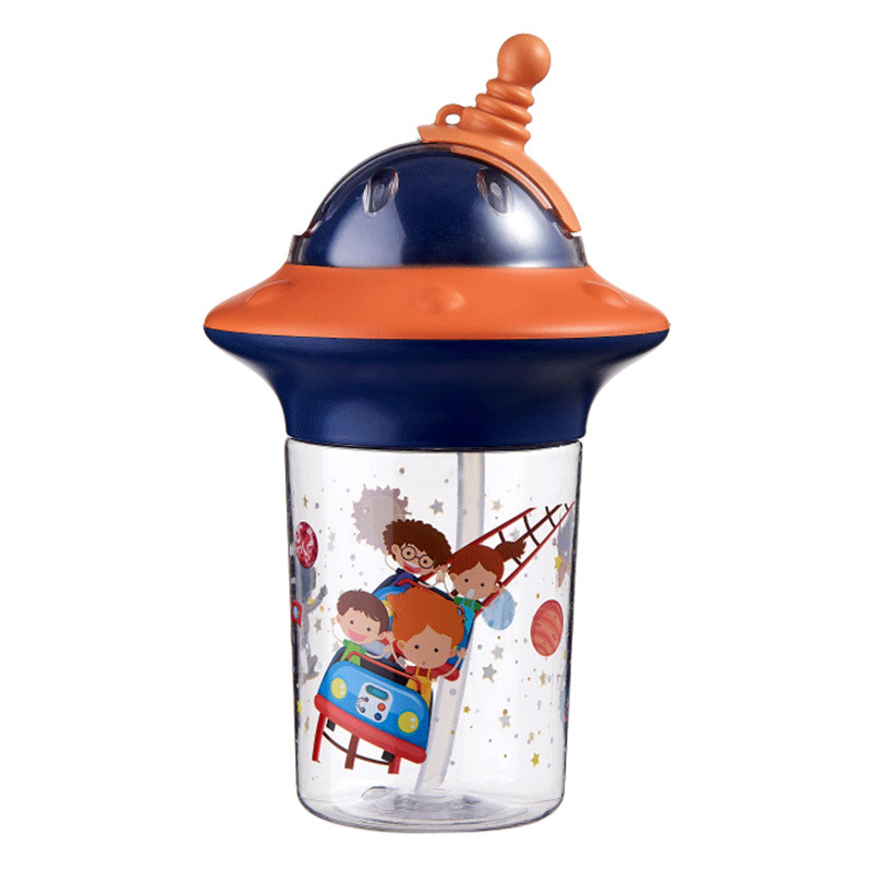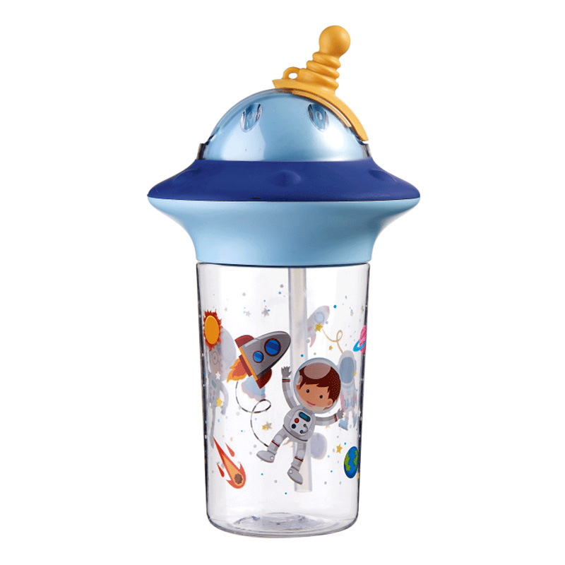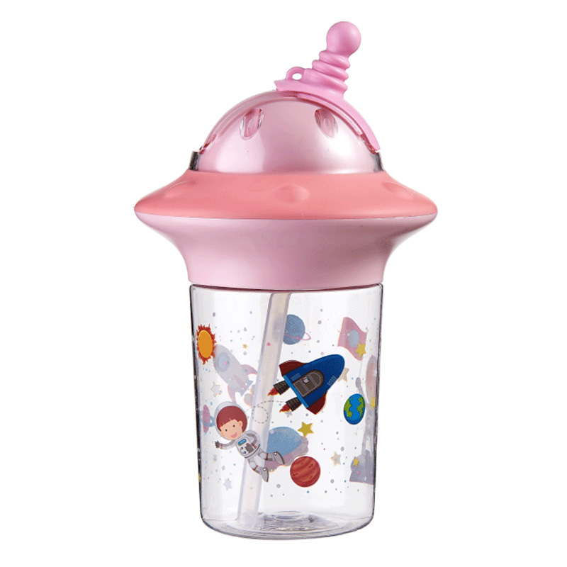 净泉新款儿童飞碟吸管杯创意卡通男女背带水壶幼儿园学生水杯水瓶
