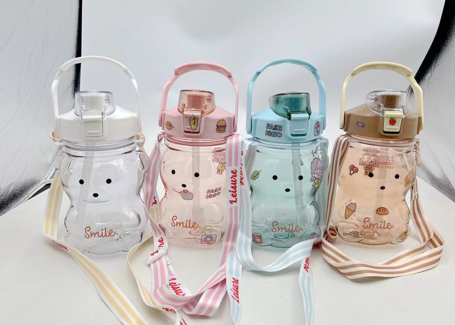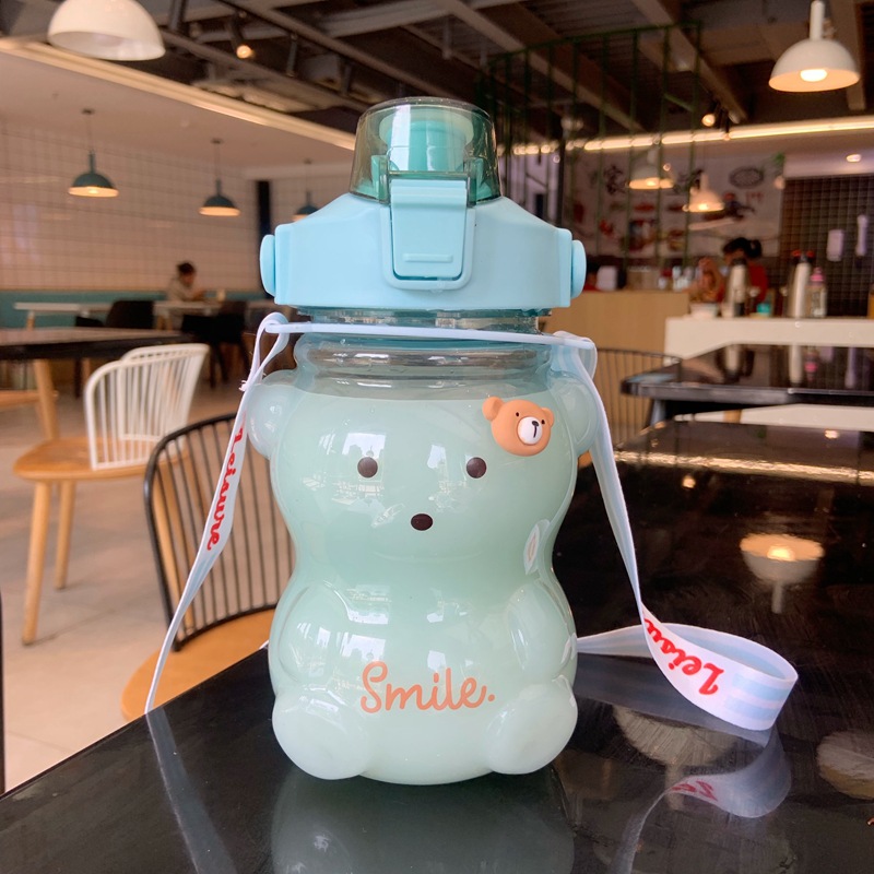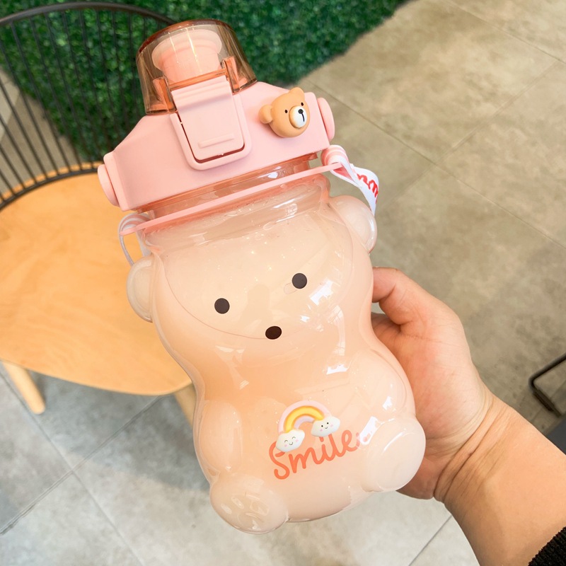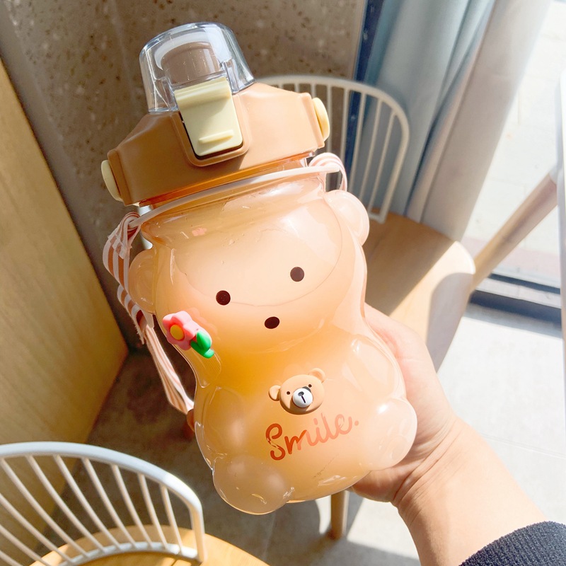 网红大容量小熊水杯学生夏季可爱塑料吸管杯女生高颜值1100ml水壶