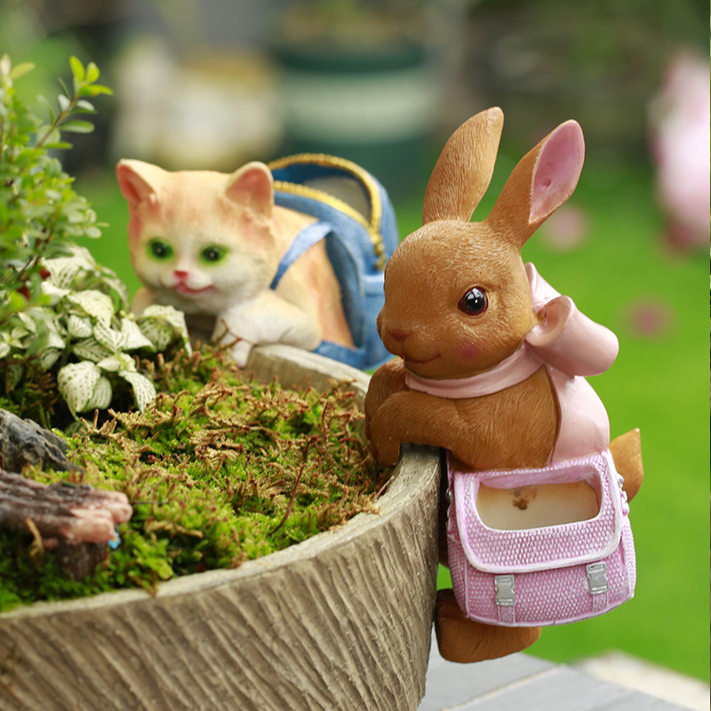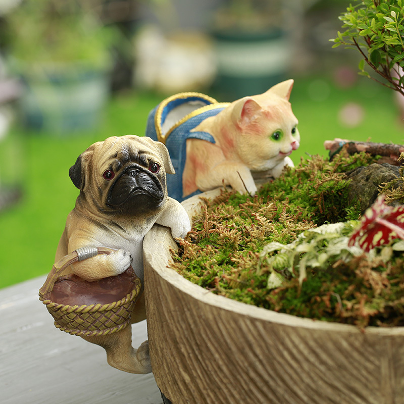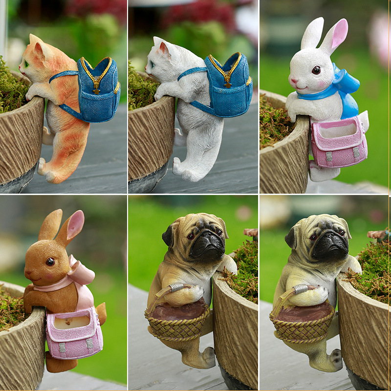 庭院花园花盆鱼缸可爱猫咪创意背包小装饰品礼品树脂挂件盆挂摆件