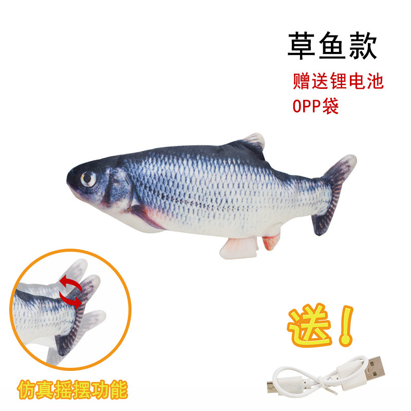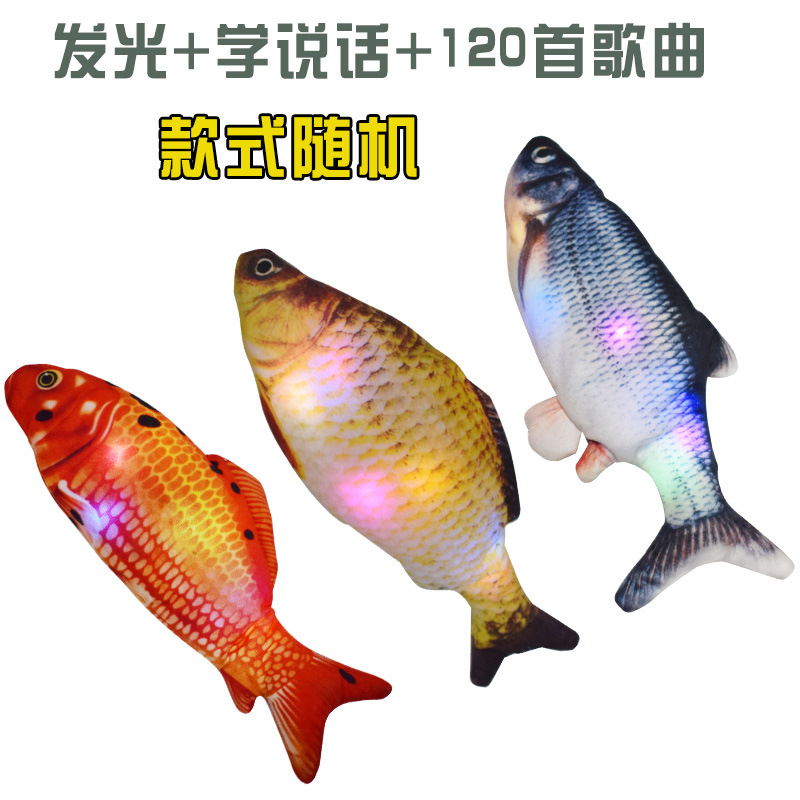 跨境新款电动鱼唱歌说话仿真鱼会跳动的鱼室内逗猫玩具厂家直销