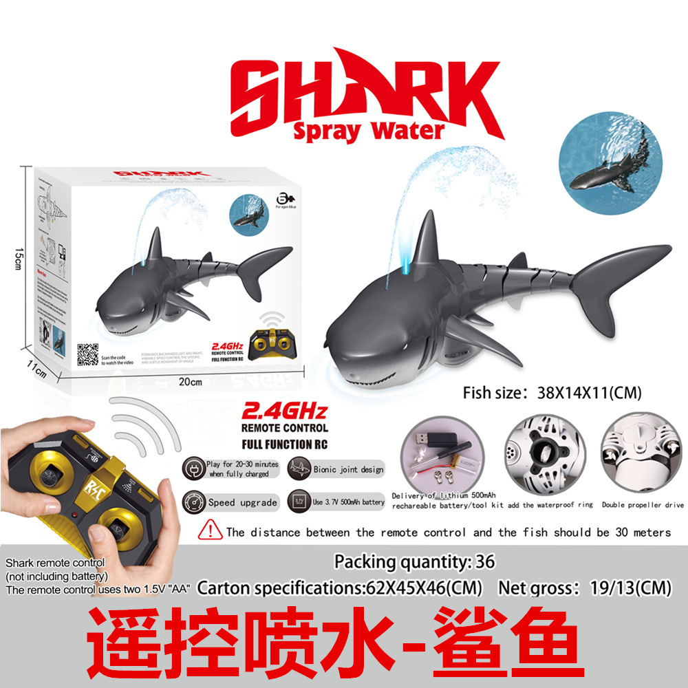 | 产品功能/Product function | 2.4G遥控4通防水鲨鱼(防水保护) 前进/后退,左转,右转 2.4G remote control 4 channel waterproof shark (waterproof protection) forward/backward, turn left, turn right |