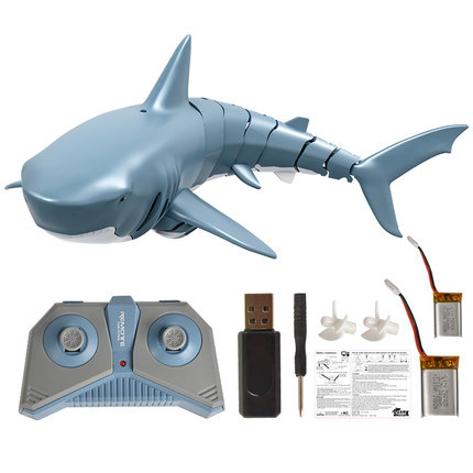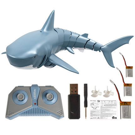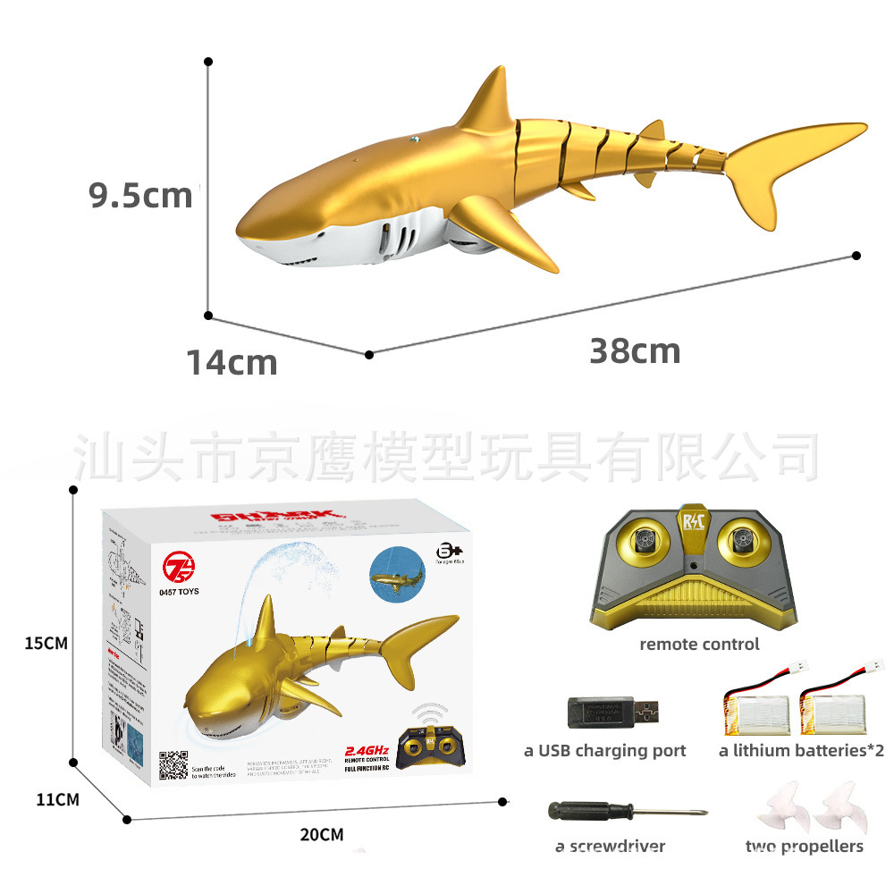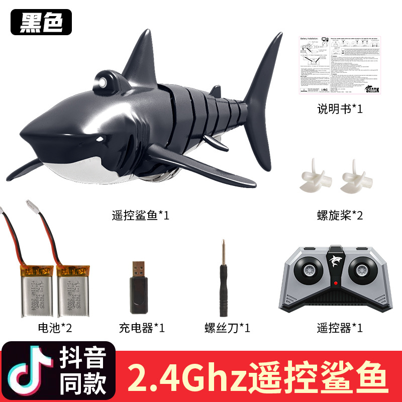 亚马逊爆款2.4G遥控喷水鲨鱼水下仿真鱼游泳黑鲨带灯玩具超长续航