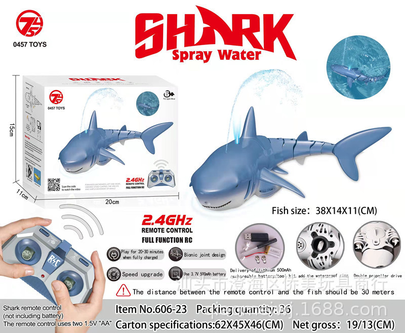 跨境爆款2.4G无线充电遥控仿真喷水鲨鱼摇摆游泳男孩儿童水上玩具