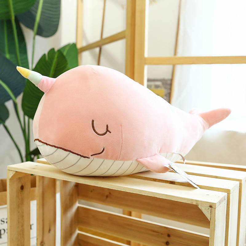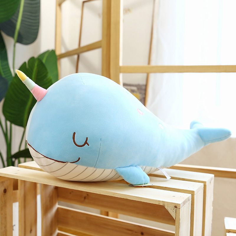 创意新款羽绒棉独角鲸鱼公仔海洋馆仿真动物玩偶剪刀机厂家直销