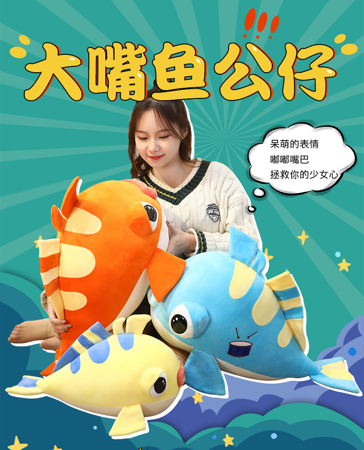 创意大嘴鱼公仔可爱小丑鱼毛绒玩具玩偶仿真小鱼儿布娃娃礼品批发