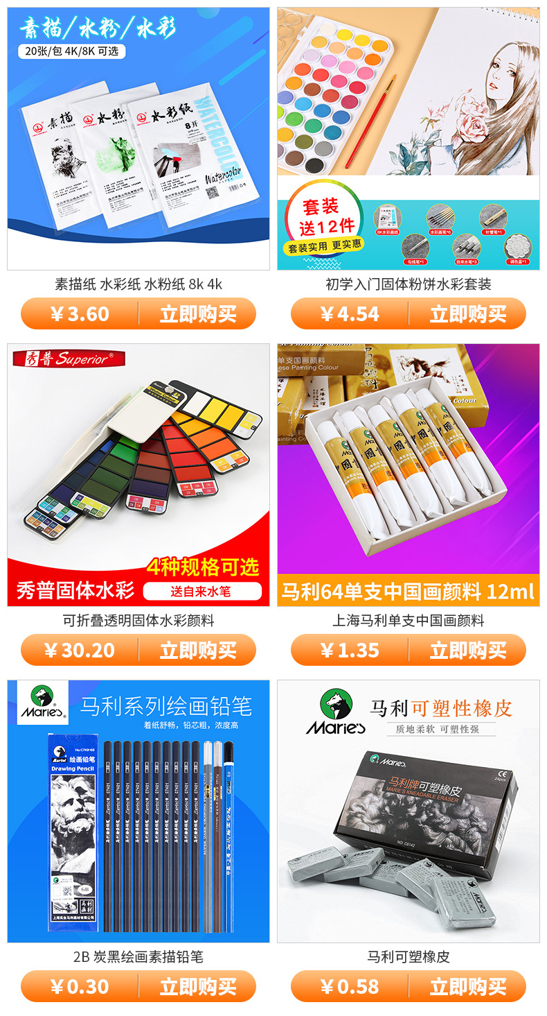 | (sell at a loss) 4k sketch paper 160g (50 pieces) non-mountain brand neutral packaging((亏本售卖)4K素描纸160g(50张)非山牌 中性包装) | USD $2.3 | 94 piece available |