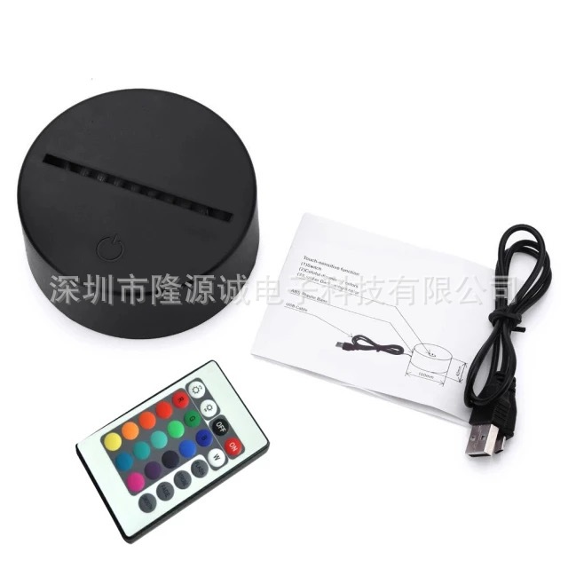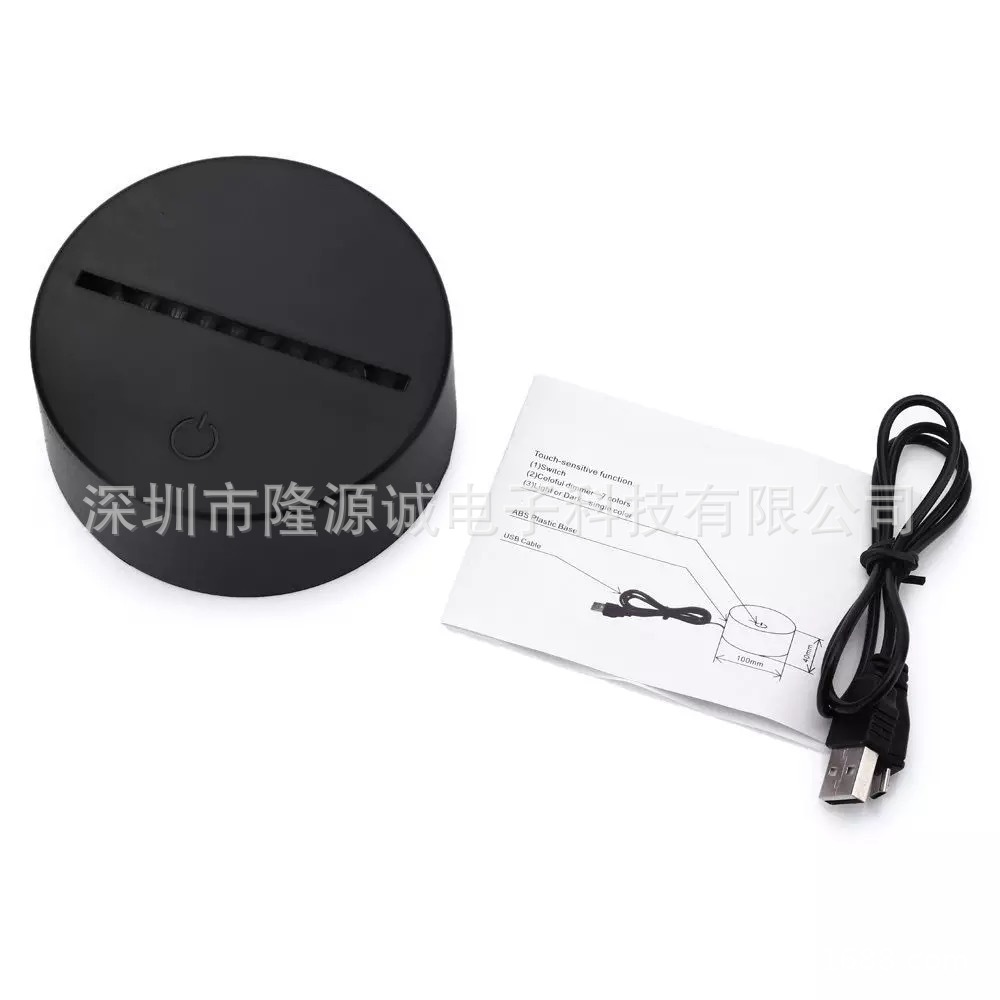 包装清单:7色3D LED夜灯触摸变色灯座*1,USB线*1