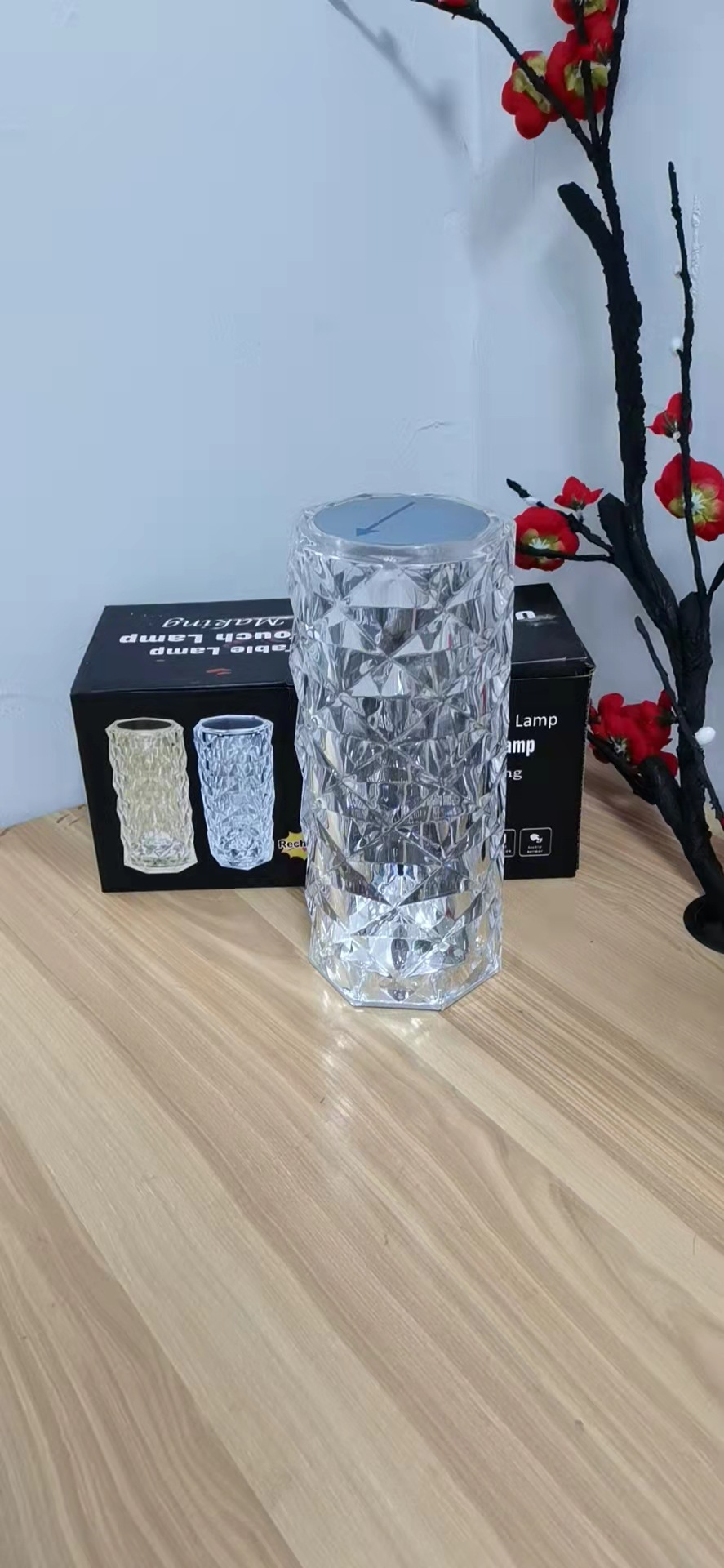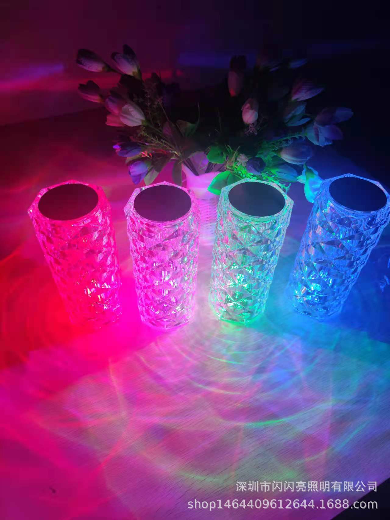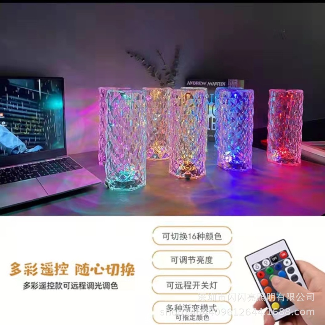 玫瑰光影水晶台灯卧室触摸小夜灯抖音花瓣钻石氛围灯