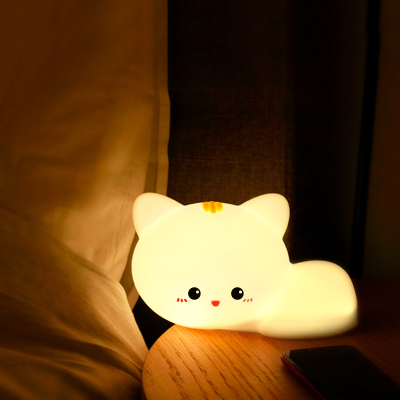 乖乖猫小夜灯鸭子七彩卡通led硅胶拍拍小夜灯拍拍床头灯定时夜灯