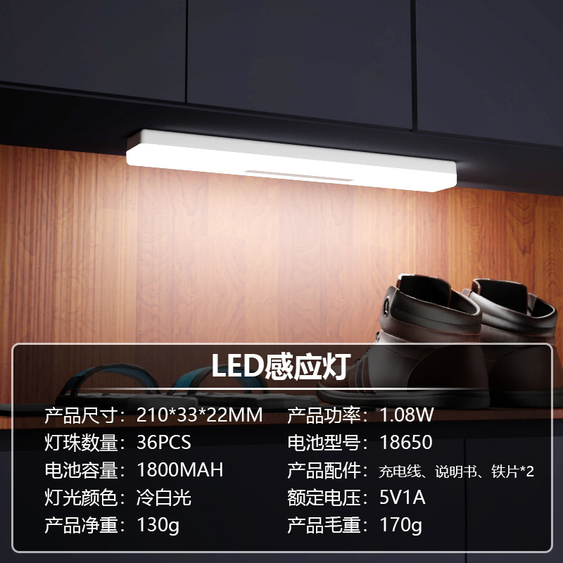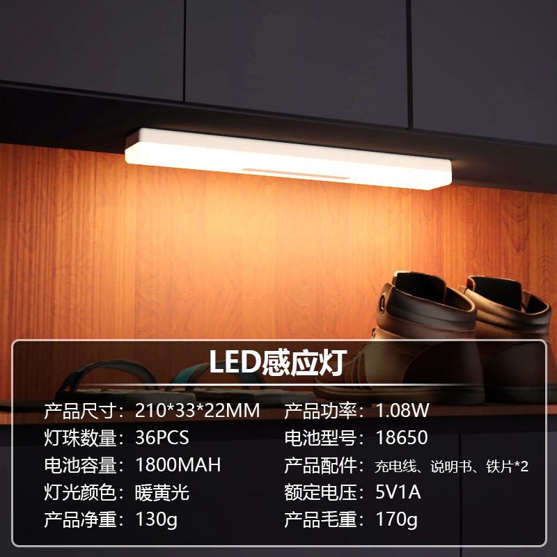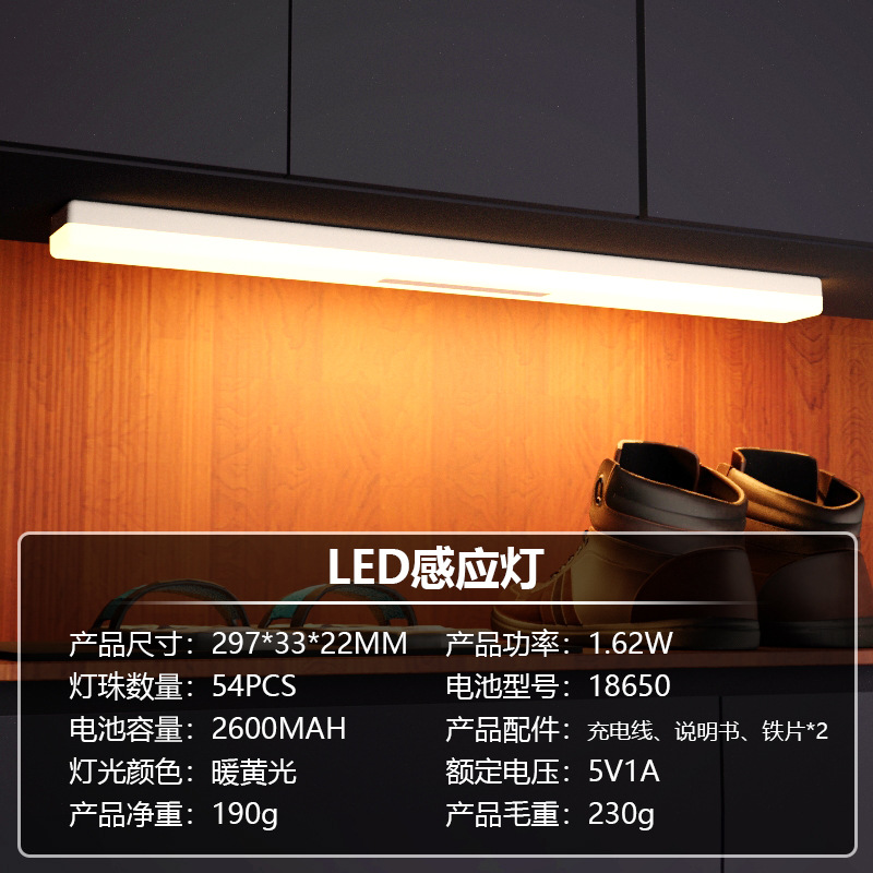智能led人体感应灯免布线磁吸橱柜衣柜灯条家居玄关卧室小夜灯带
