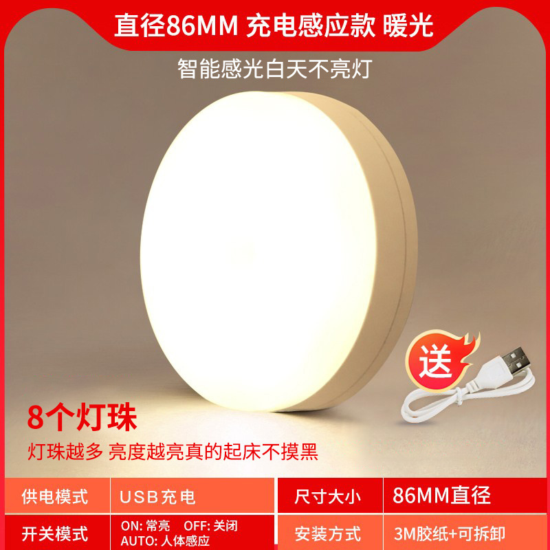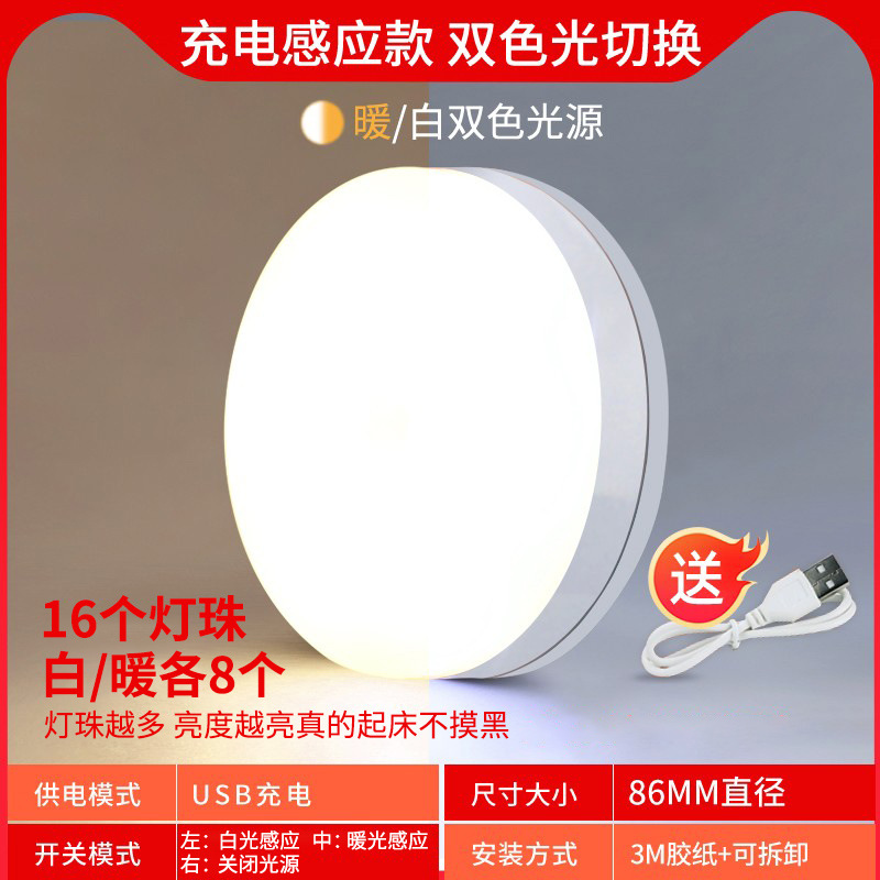 智能人体感应过道小夜灯起夜家用衣柜床头灯带卧室充电感应灯批发