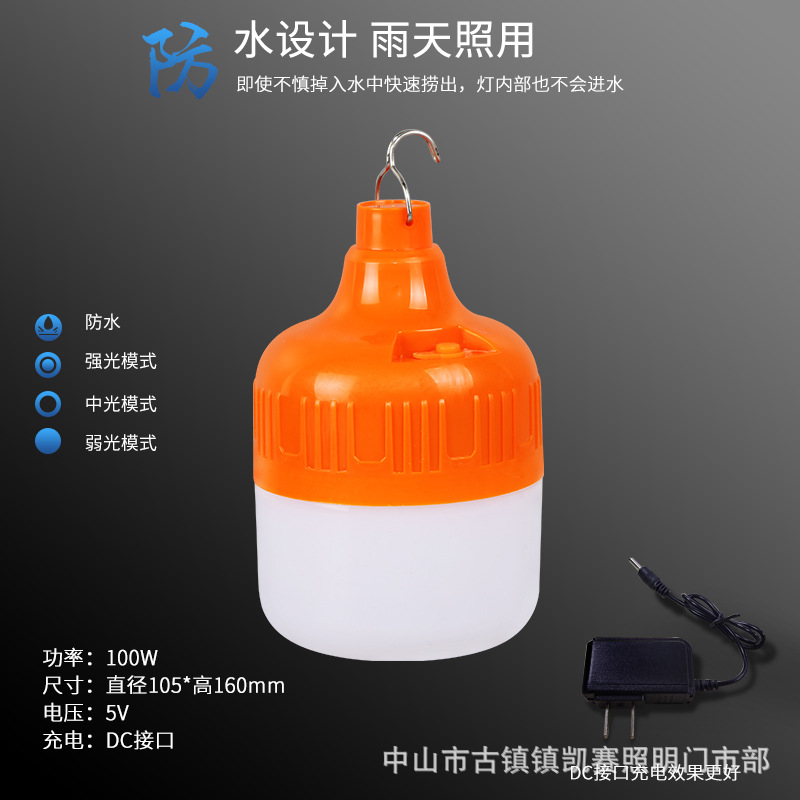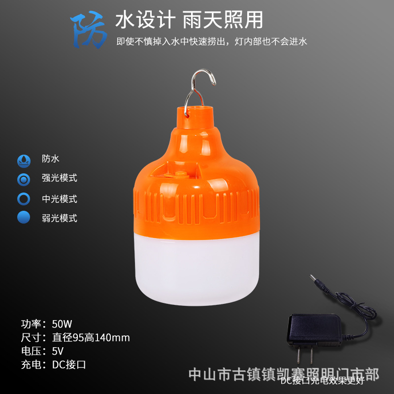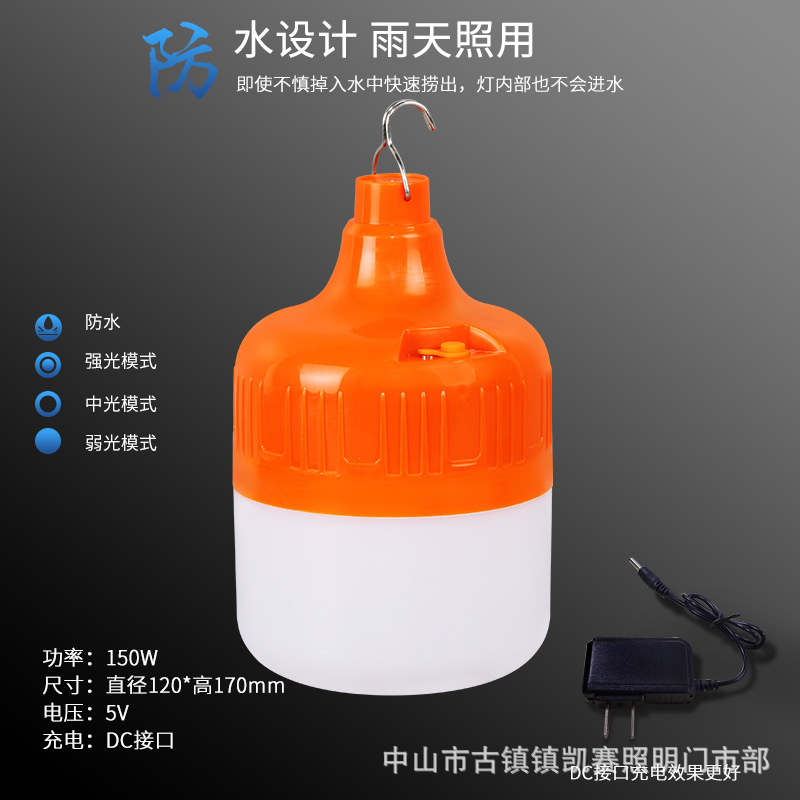 led防水应急灯泡LED地摊夜市摆摊灯户外露营无线照明橙色充电球泡