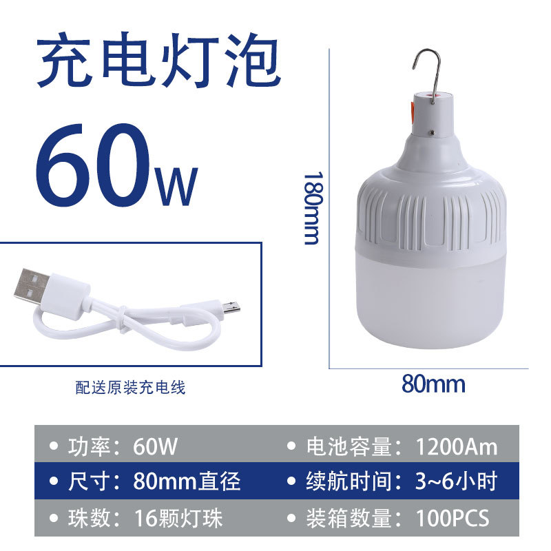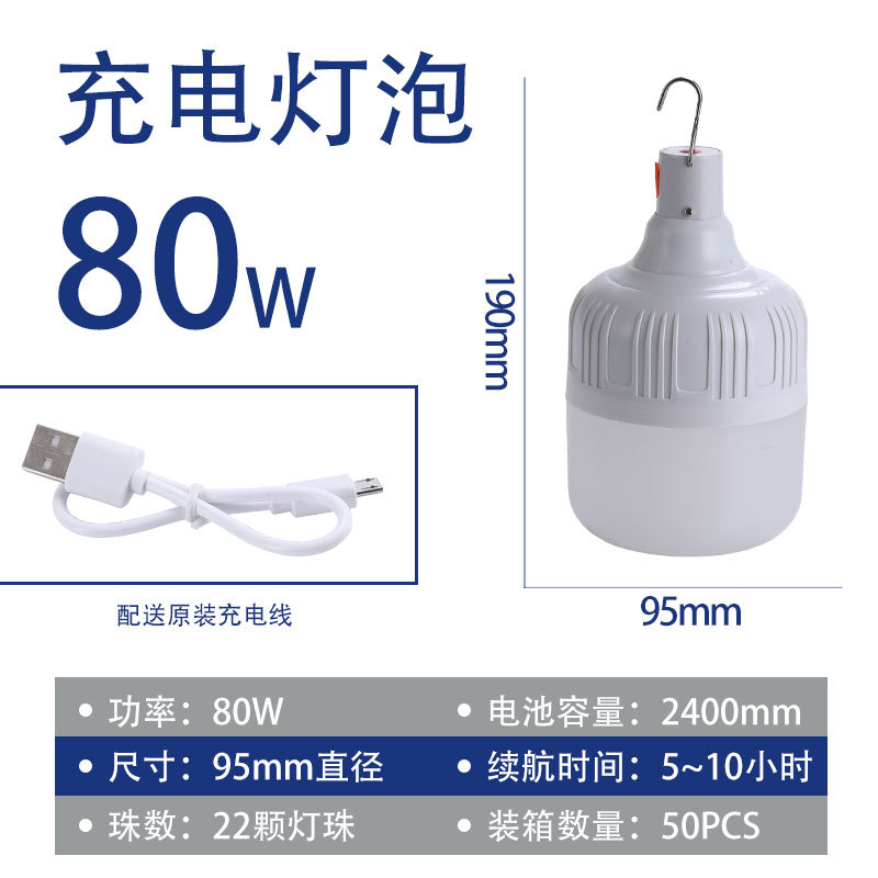 led充电灯泡夜市摆摊灯 移动家用停电节能应急照明球泡户外露营灯