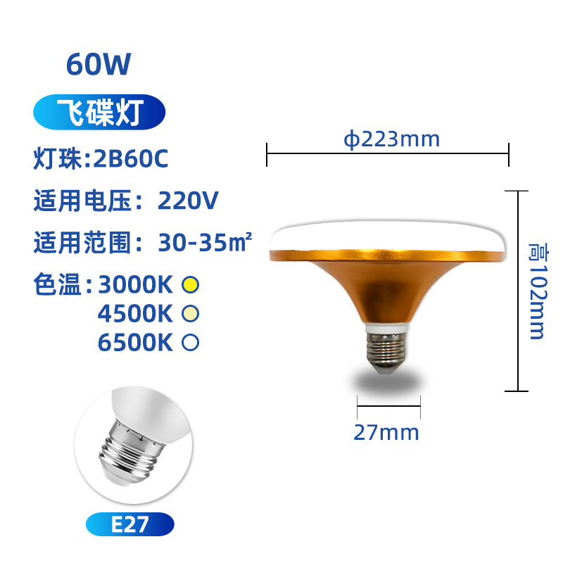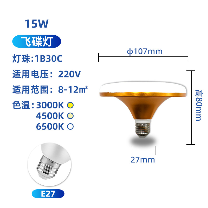 金色圆形led飞碟灯 E27螺口灯泡 家用led节能灯 地摊高亮照明球泡