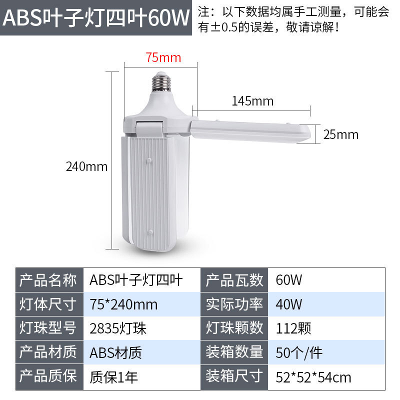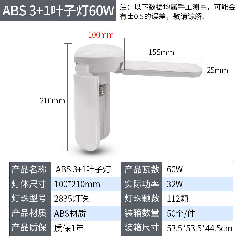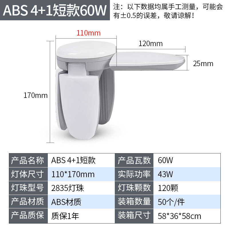 | abs four-leaf lamp 60w (wide pressure):6500k (cold white)(ABS四叶灯60W(宽压):6500K(冷白)) | USD $3.31 | 99985 piece available |