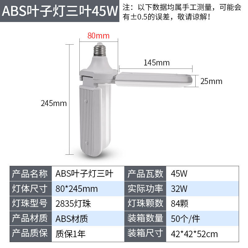 | abs three-leaf lamp 45w (wide pressure):6500k (cold white)(ABS三叶灯45W(宽压):6500K(冷白)) | USD $2.73 | 99985 piece available |