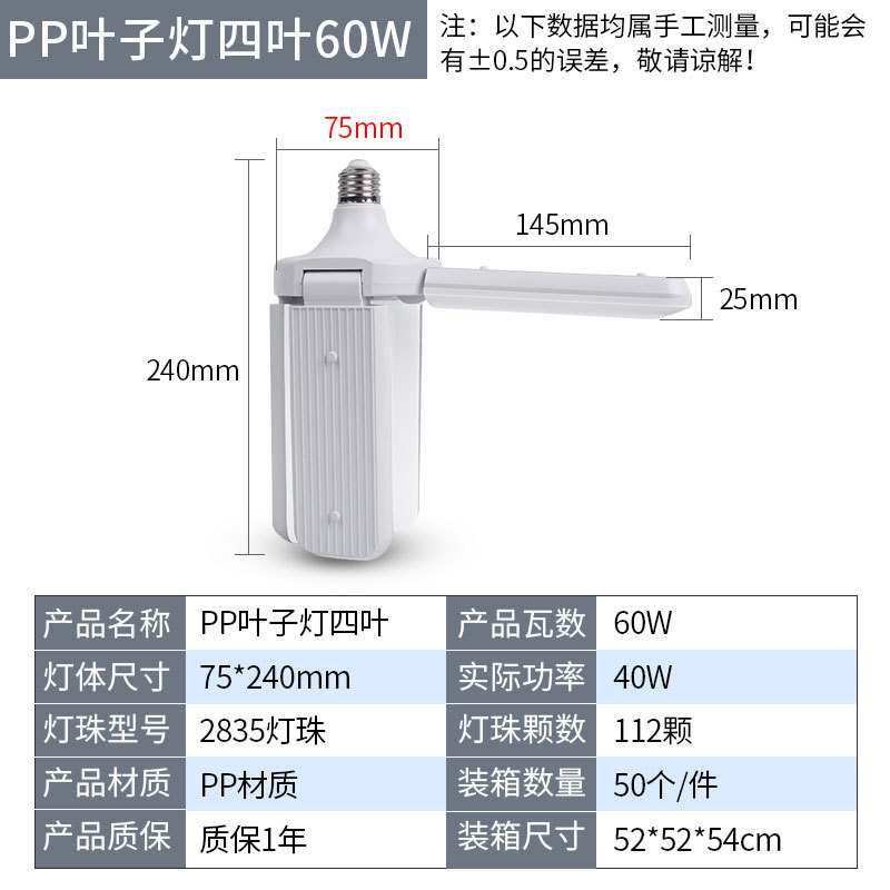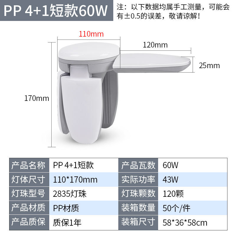 | pp four-leaf lamp 60w (wide pressure):6500k (cold white)(PP四叶灯60W(宽压):6500K(冷白)) | USD $2.78 | 99985 piece available |