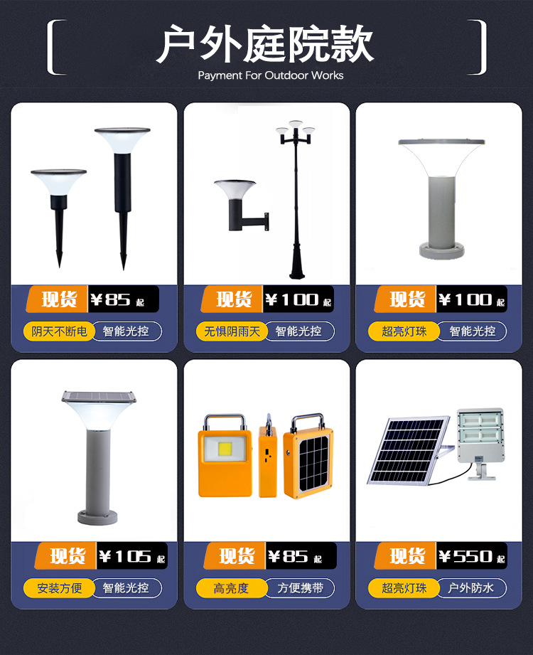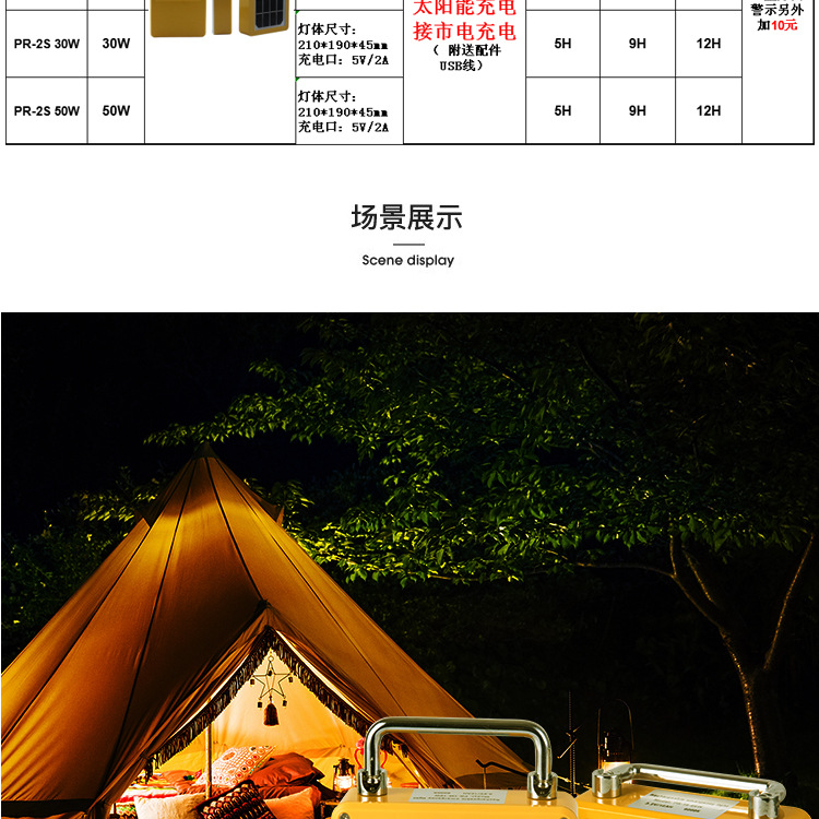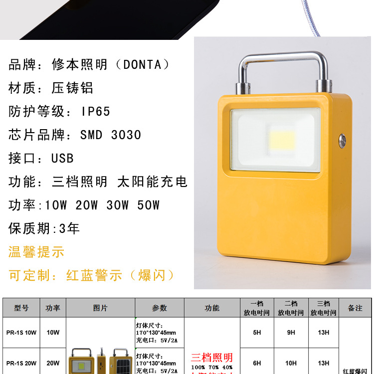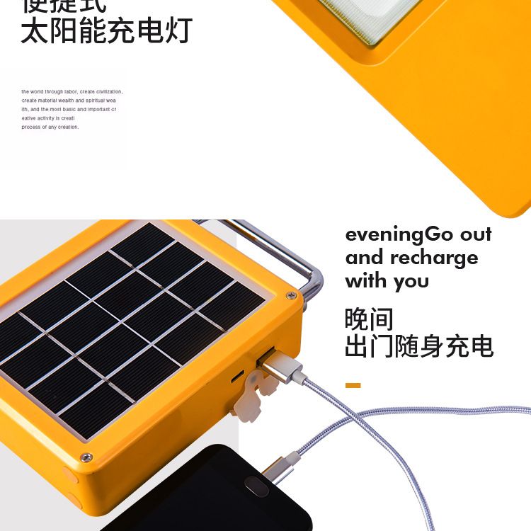 户外LED太阳能充电灯10W20W30W50W家用工地应急充电灯露营充电灯