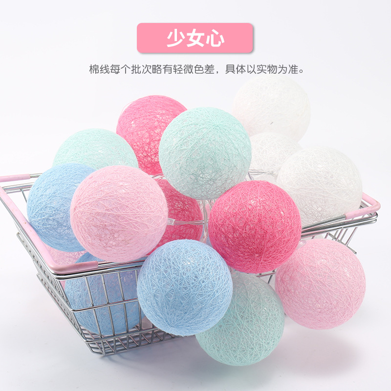 LED彩灯棉线圆球星星灯串电池USB马卡龙网红ins风少女心摆摊装饰