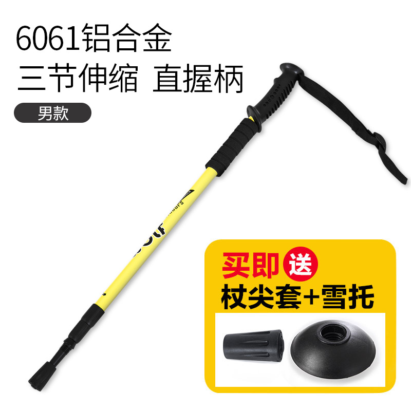 北山狼户外超轻折叠登山杖铝合金伸缩直柄T柄拐杖徒步手杖登山杖