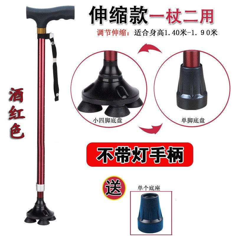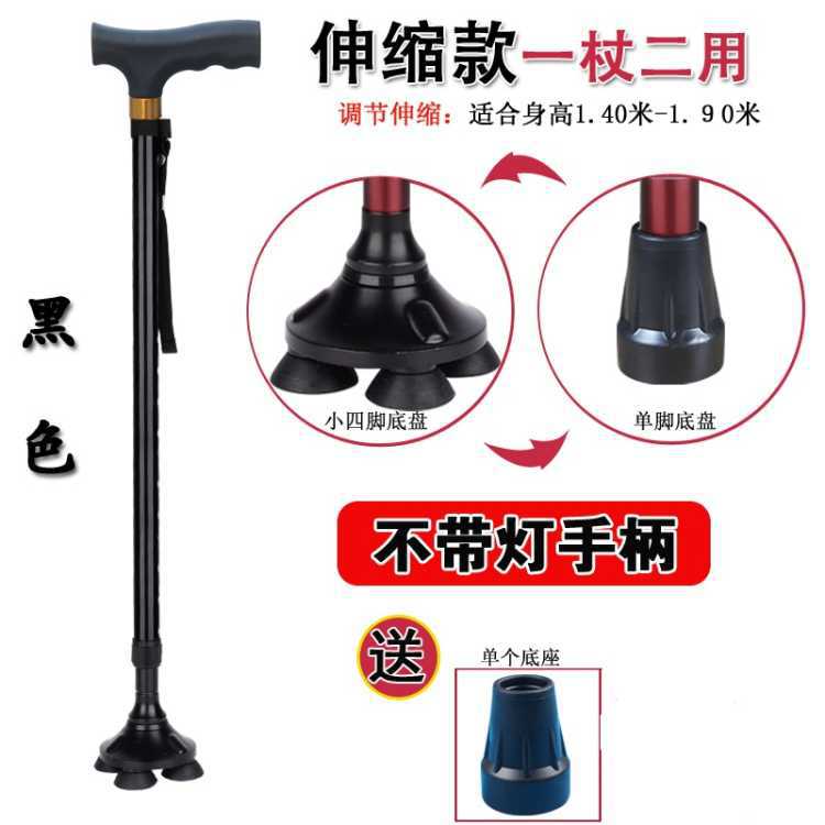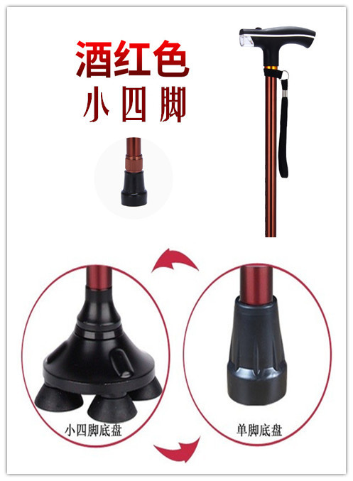 手杖伸缩折叠拐杖厂家直供 助行器老人拐杖小四脚带灯 铝合金拐杖