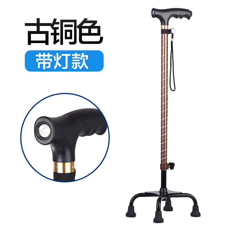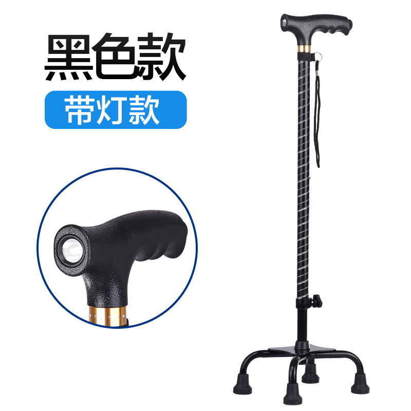 老人拐杖拐棍四爪手杖四脚铝合金拐扙老年带灯轻便伸缩手杖