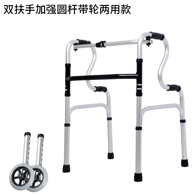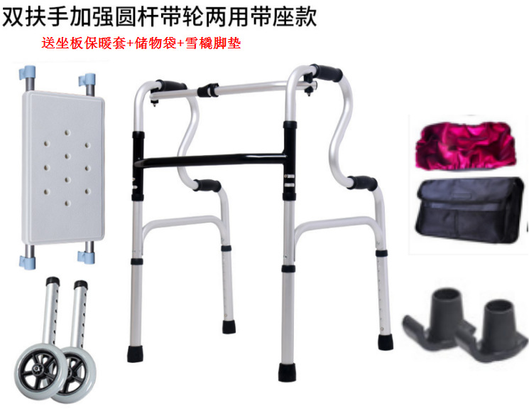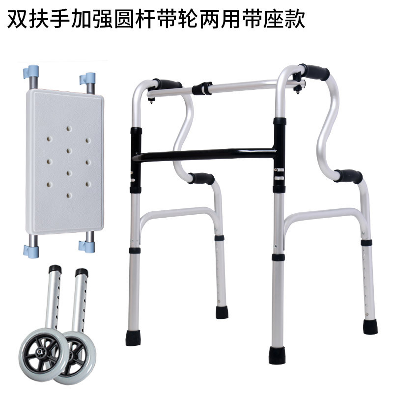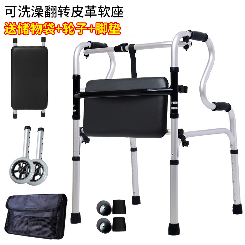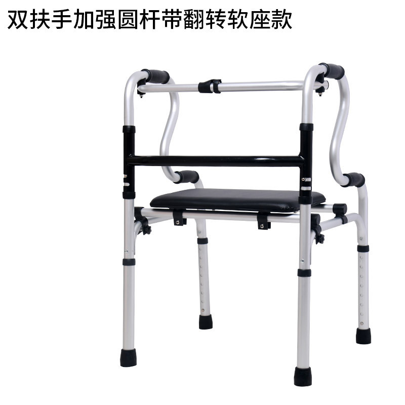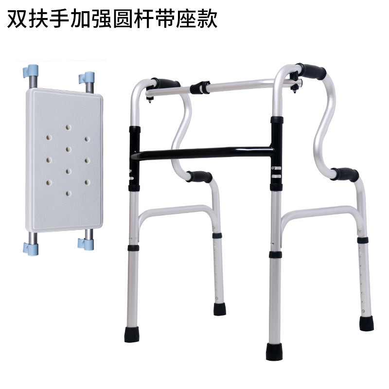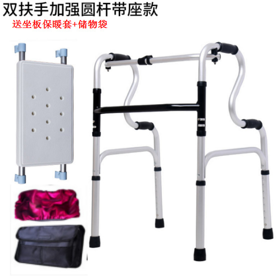 带座助行器 老人铝合金带轮四脚拐杖助步器带坐板8204