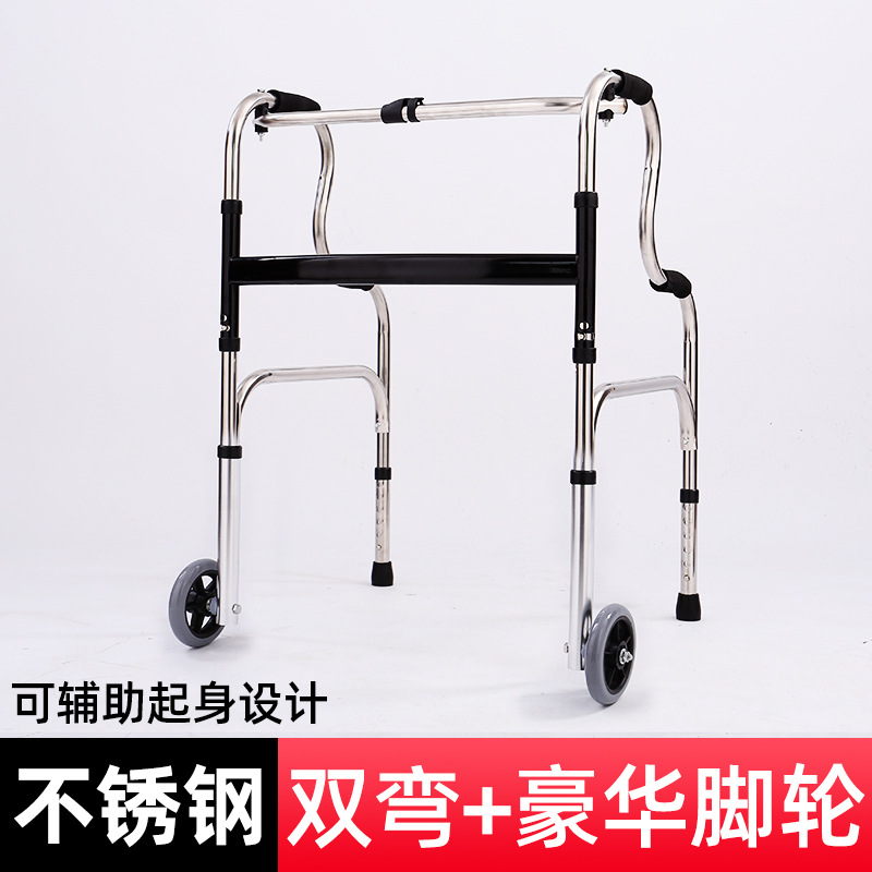 现货批发不锈钢助行器老年人助步器学步器四脚拐杖可折叠厂家供应