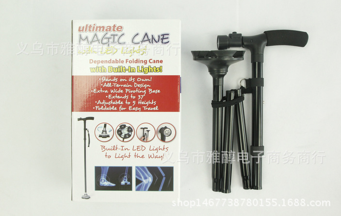 TV新款魔法折叠不倒带灯拐杖五节拐杖老人手杖现货批trust cane