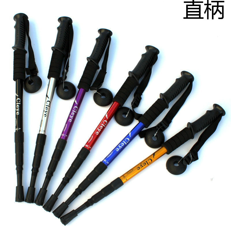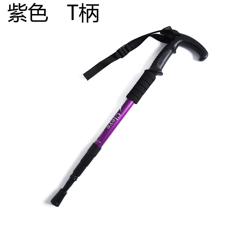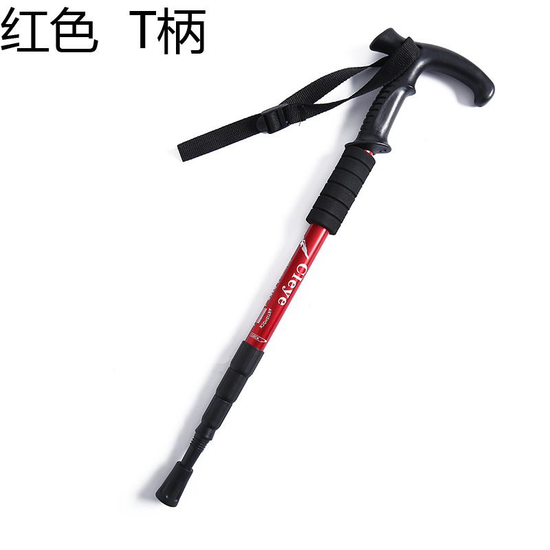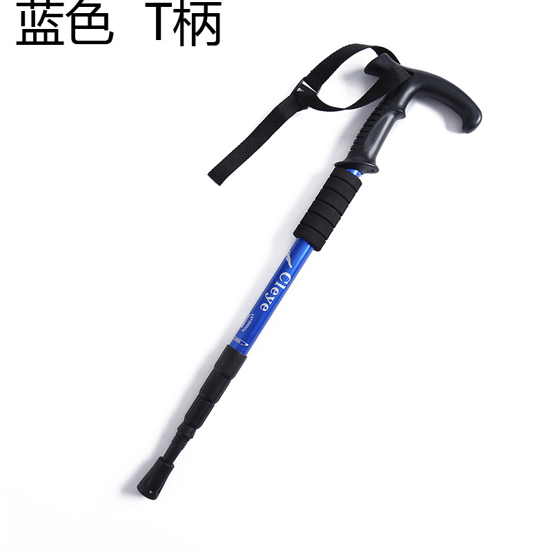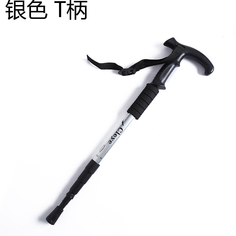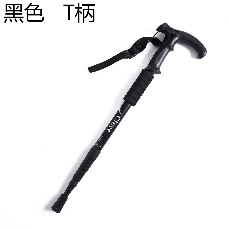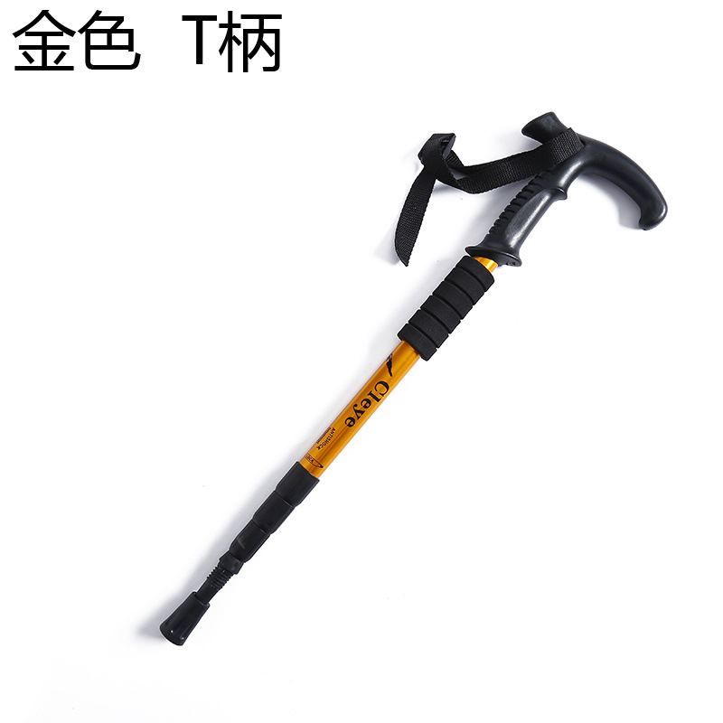 户外登山杖钛合金T型直柄四节伸缩折叠手杖超轻徒步爬山防滑拐杖