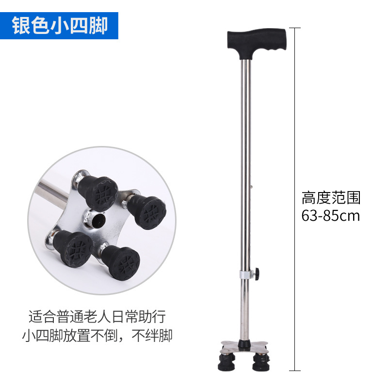 老年人拐棍老人手杖四脚拐杖四角防滑安稳伸缩拐杖助行器工厂直供