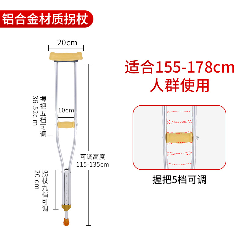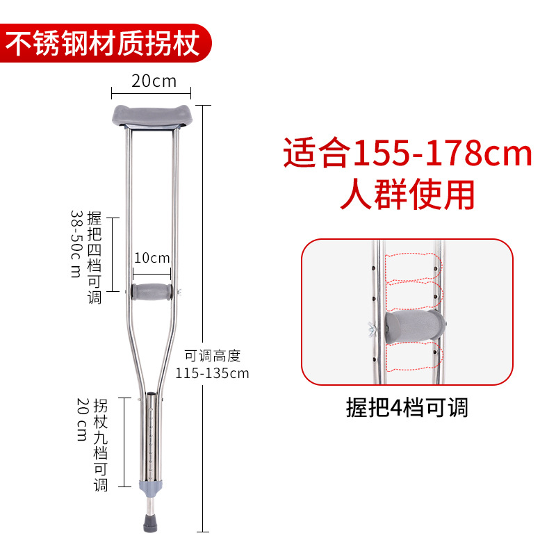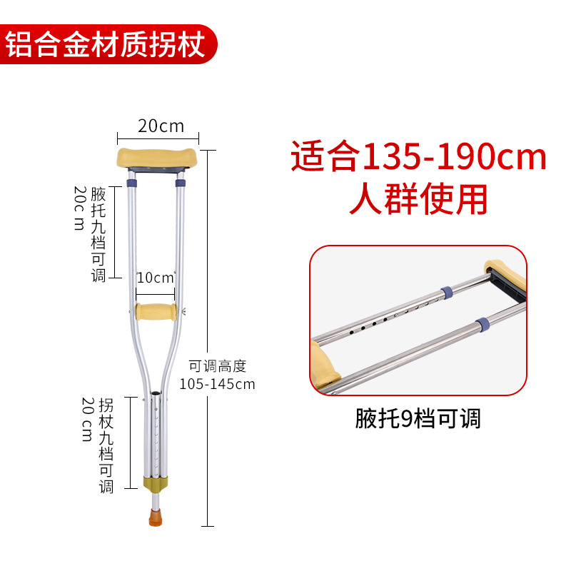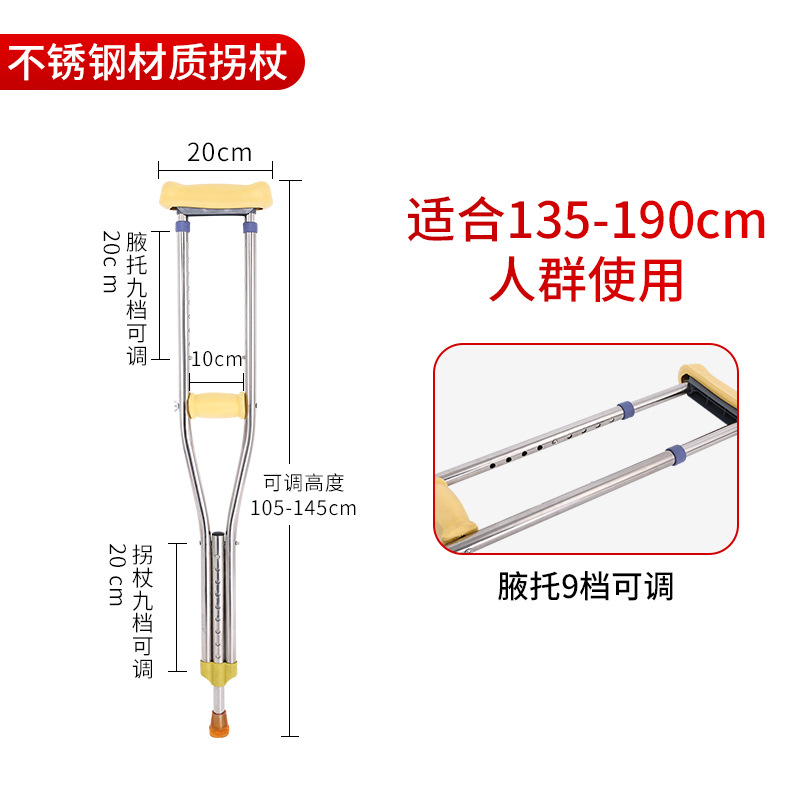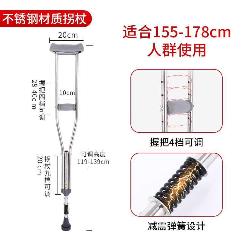 厂家批发 加厚不锈钢腋下拐杖 铝合金拐杖可调节升降腋拐