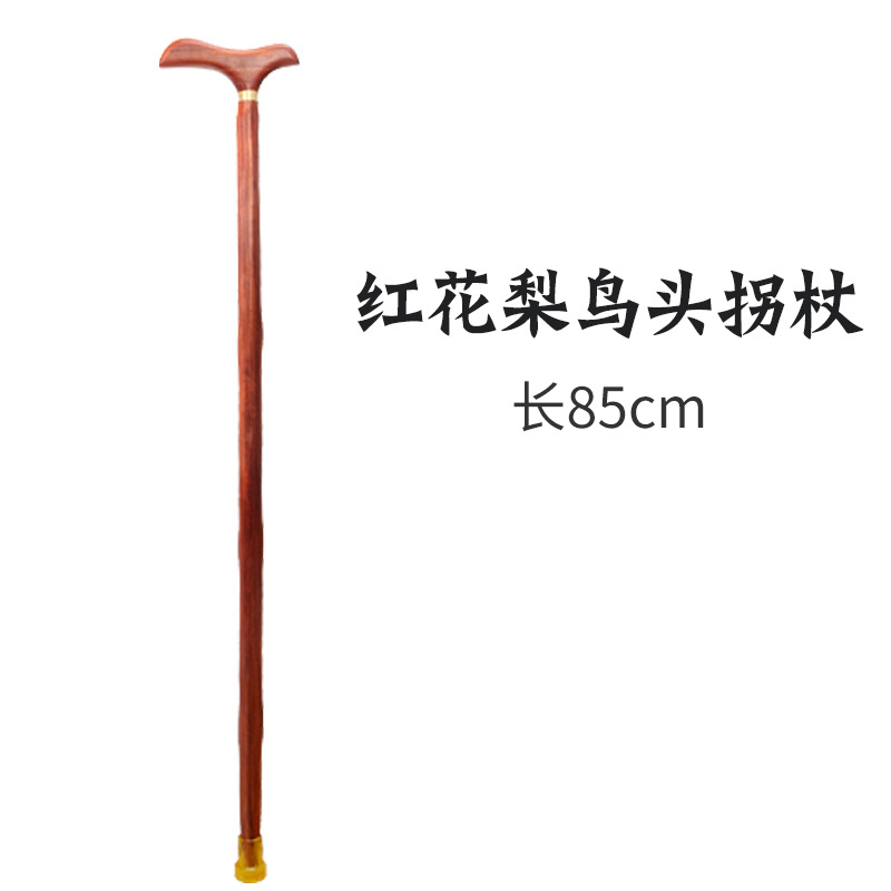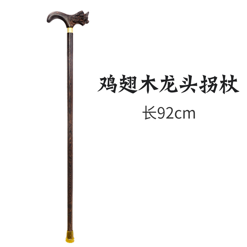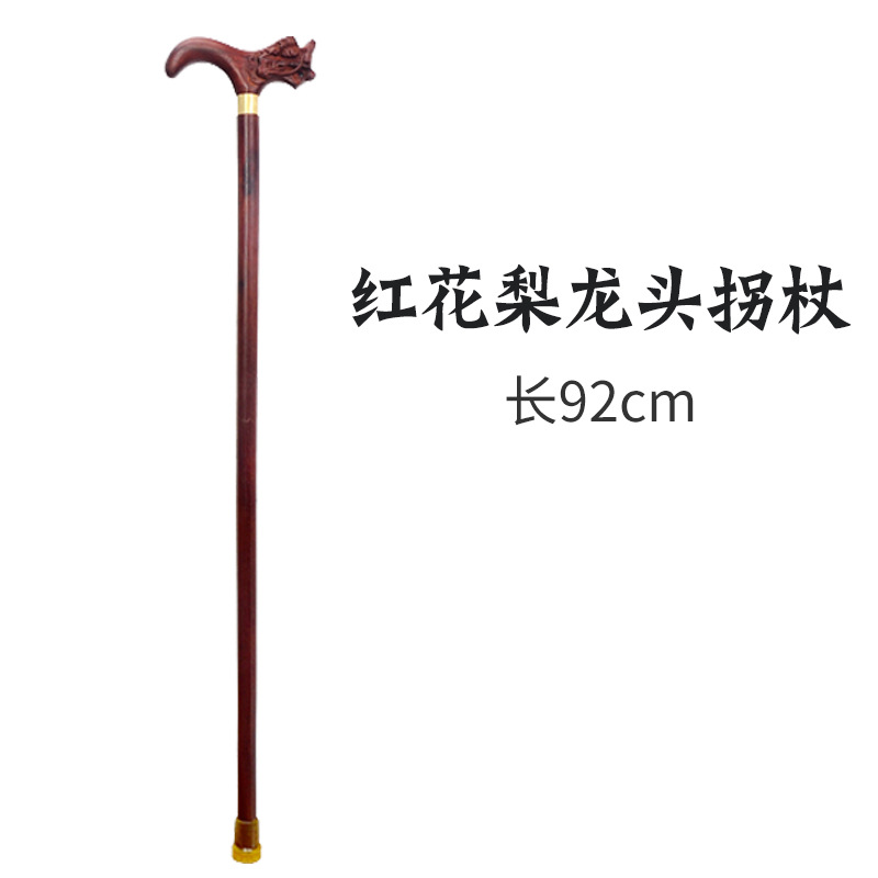 圆头鸡翅木红花梨助行文明拐杖 老年人龙头红木手杖木质登山杖