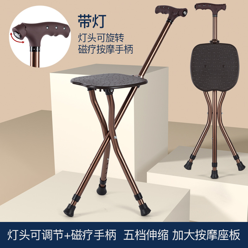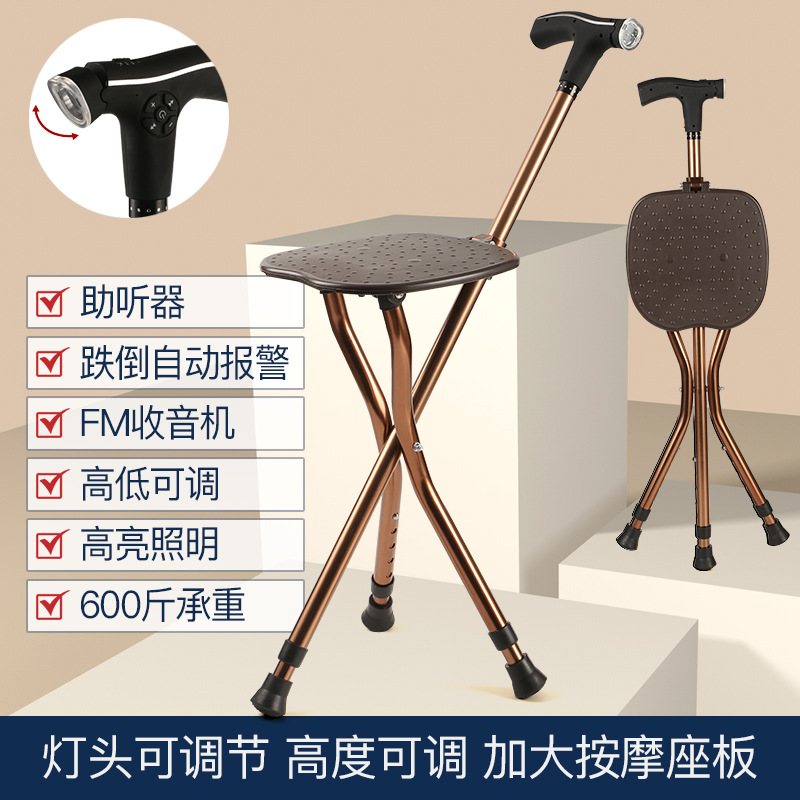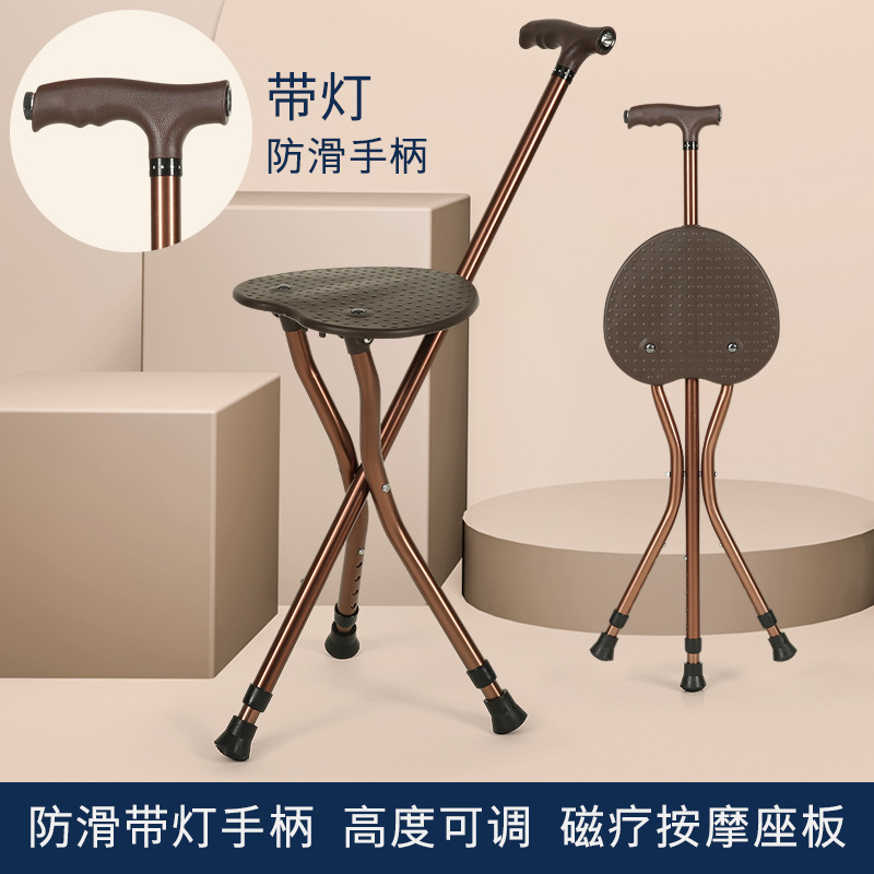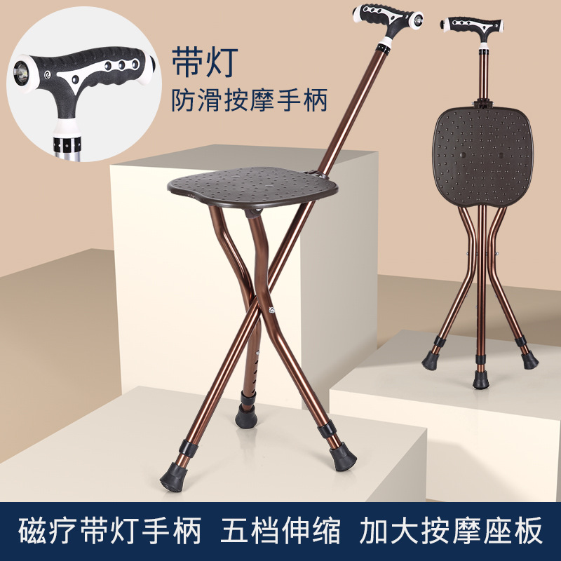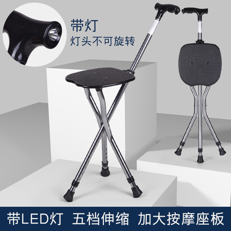 鼎优拐杖座椅老人可坐防滑板凳拐棍手杖四脚两用椅子折叠带座椅轻