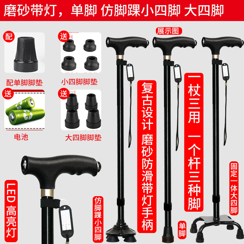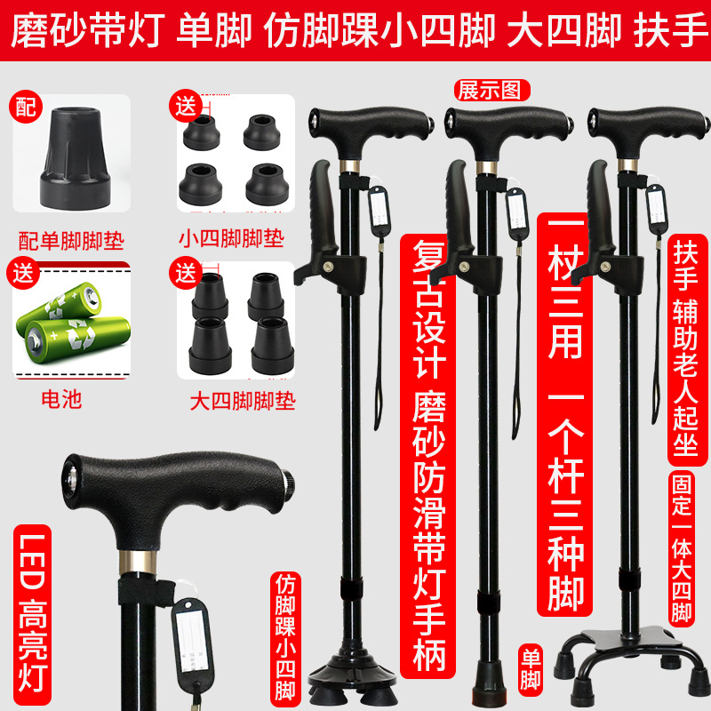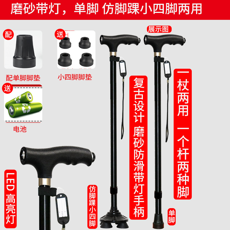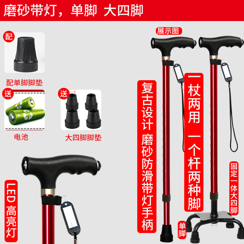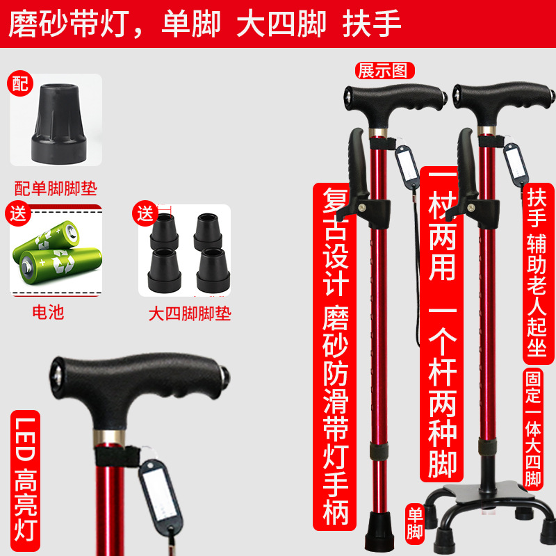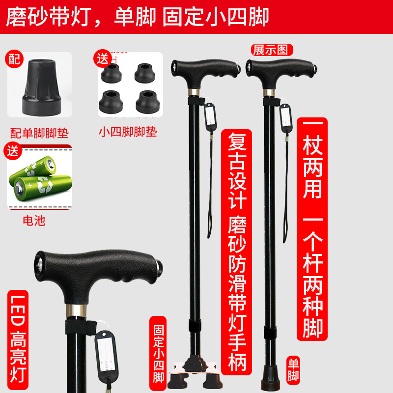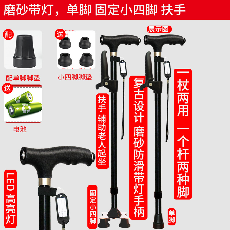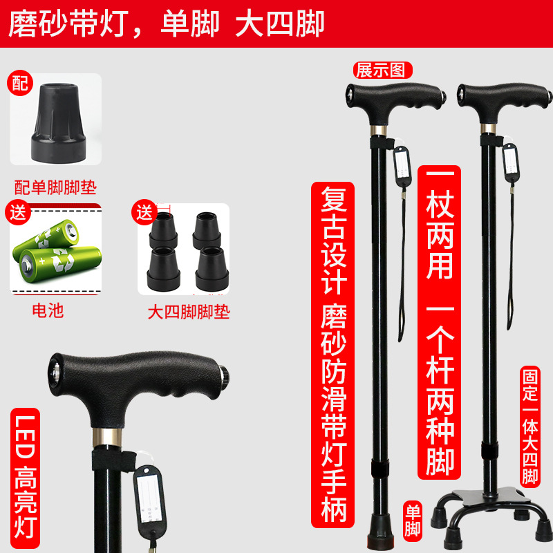 代发拐杖批发老人拐棍四脚手杖铝合金老年人伸缩调节高低带灯