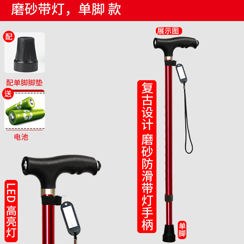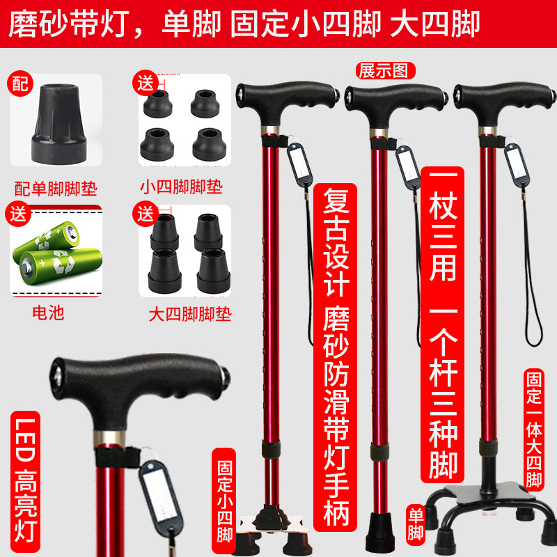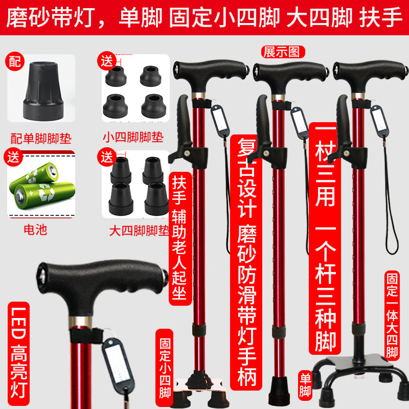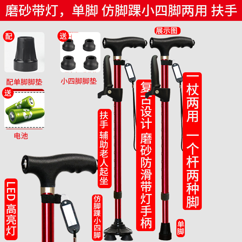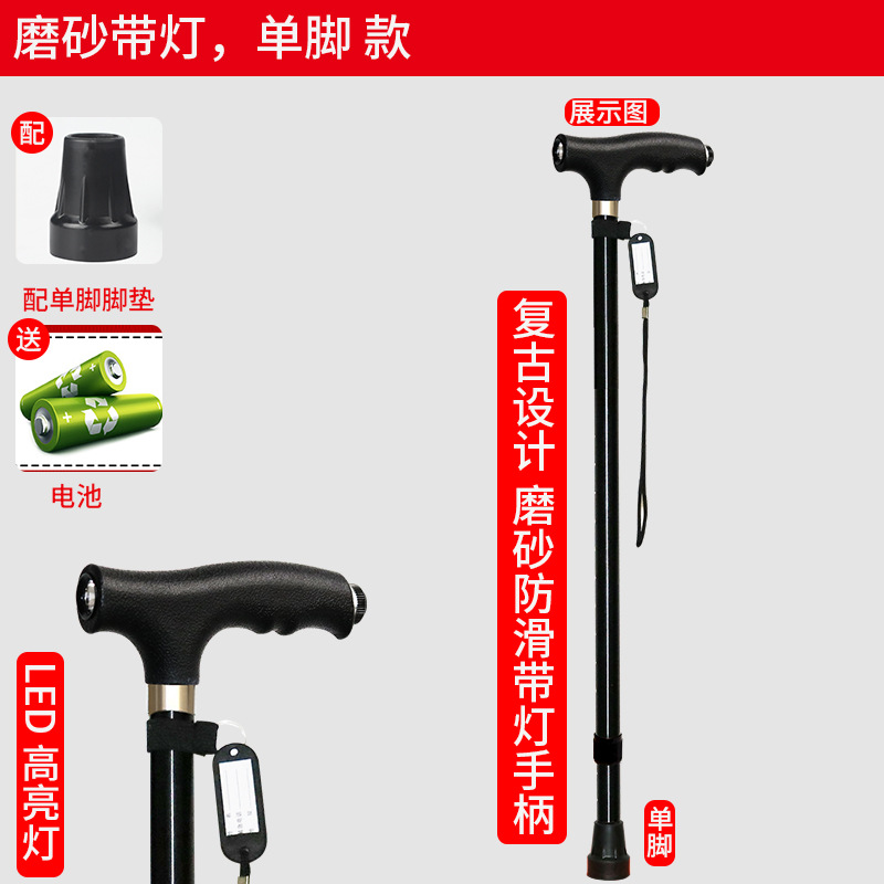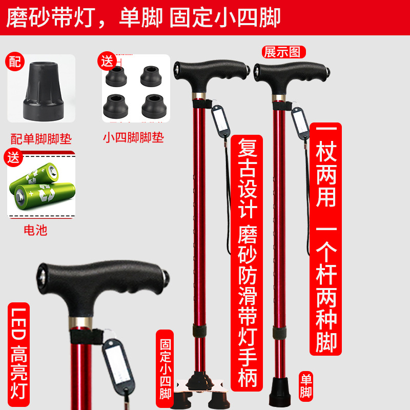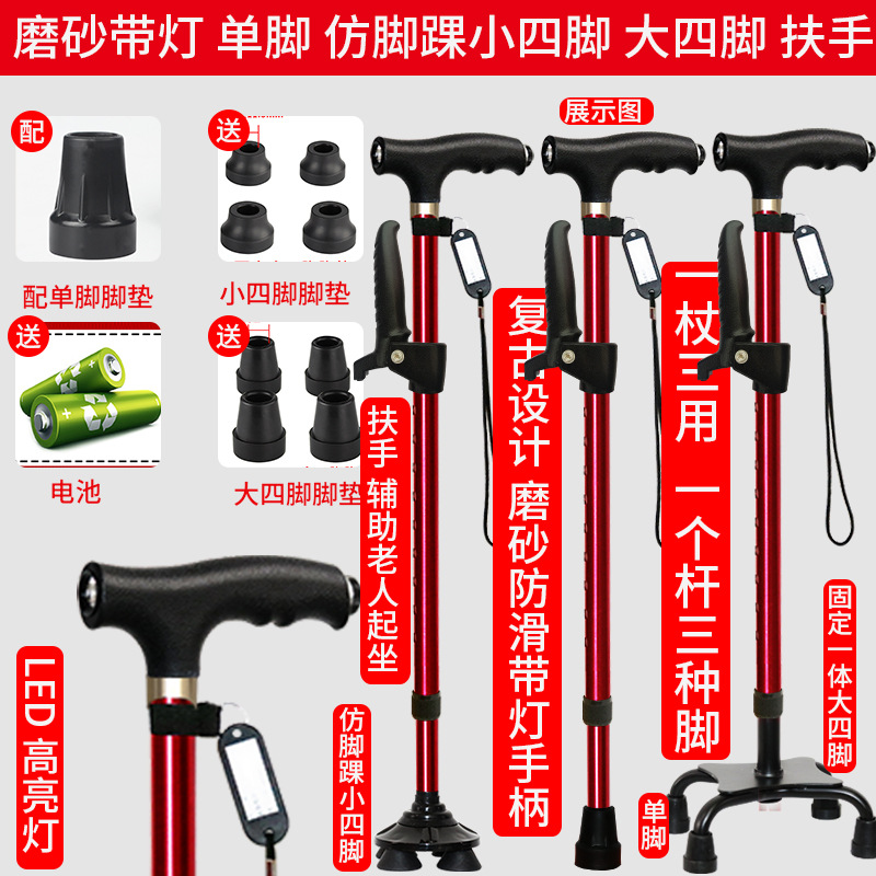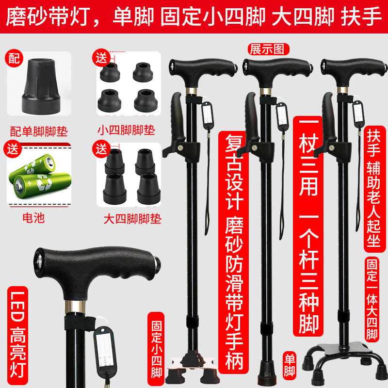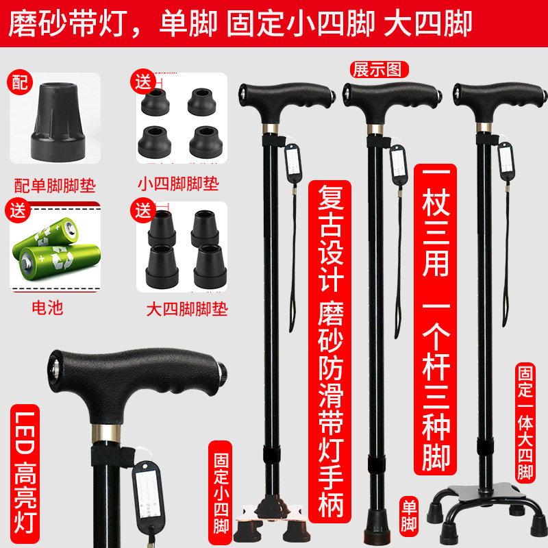 代发拐杖批发老人拐棍四脚手杖铝合金老年人伸缩调节高低带灯