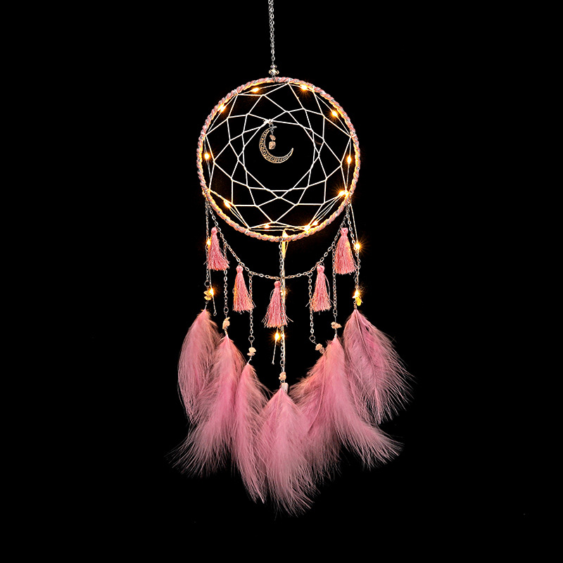 工艺品创意风铃捕梦网挂件羽毛家居装饰扑梦网灯生日礼物送礼