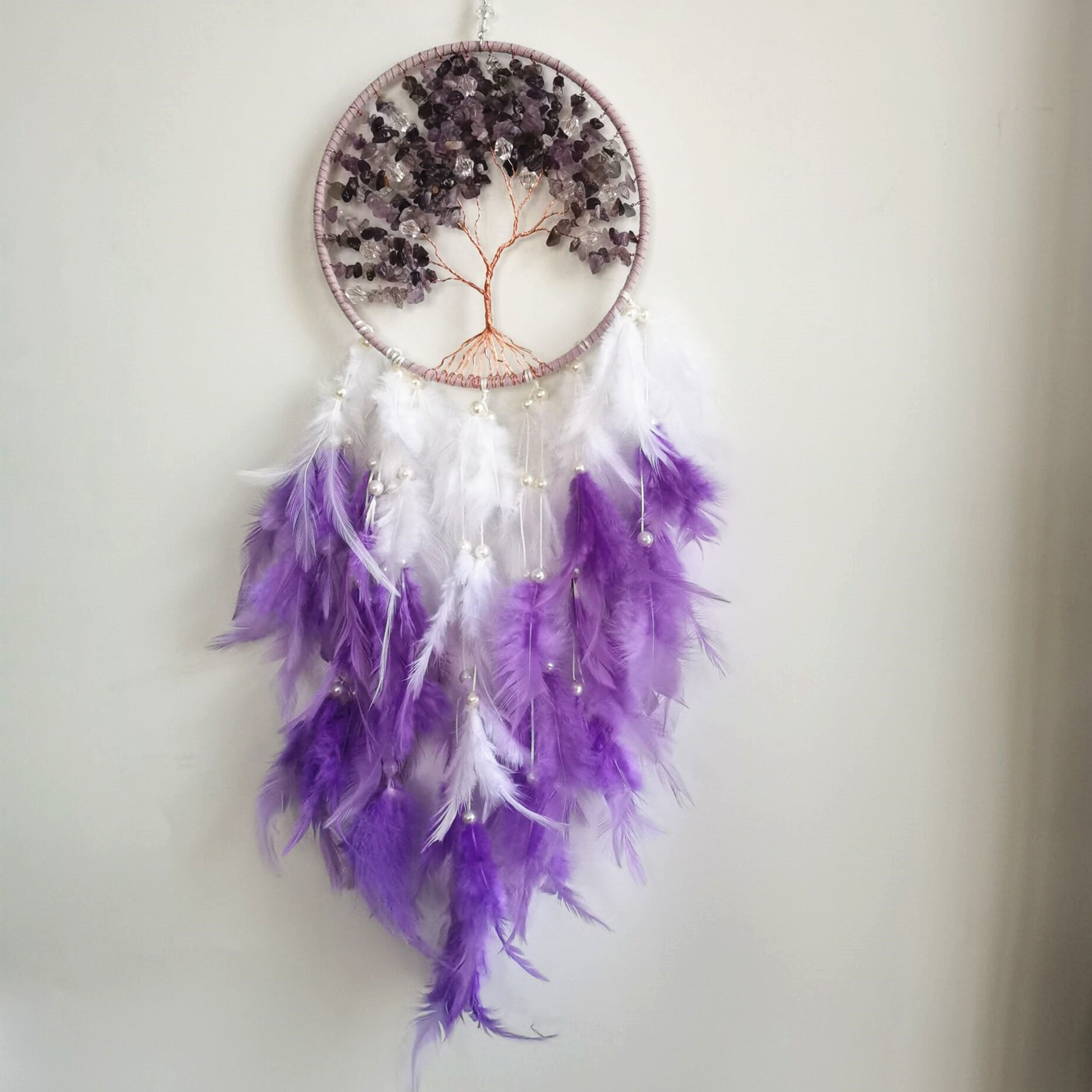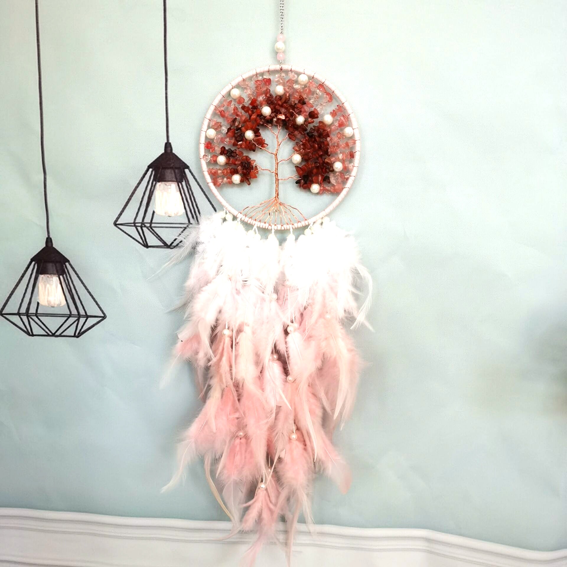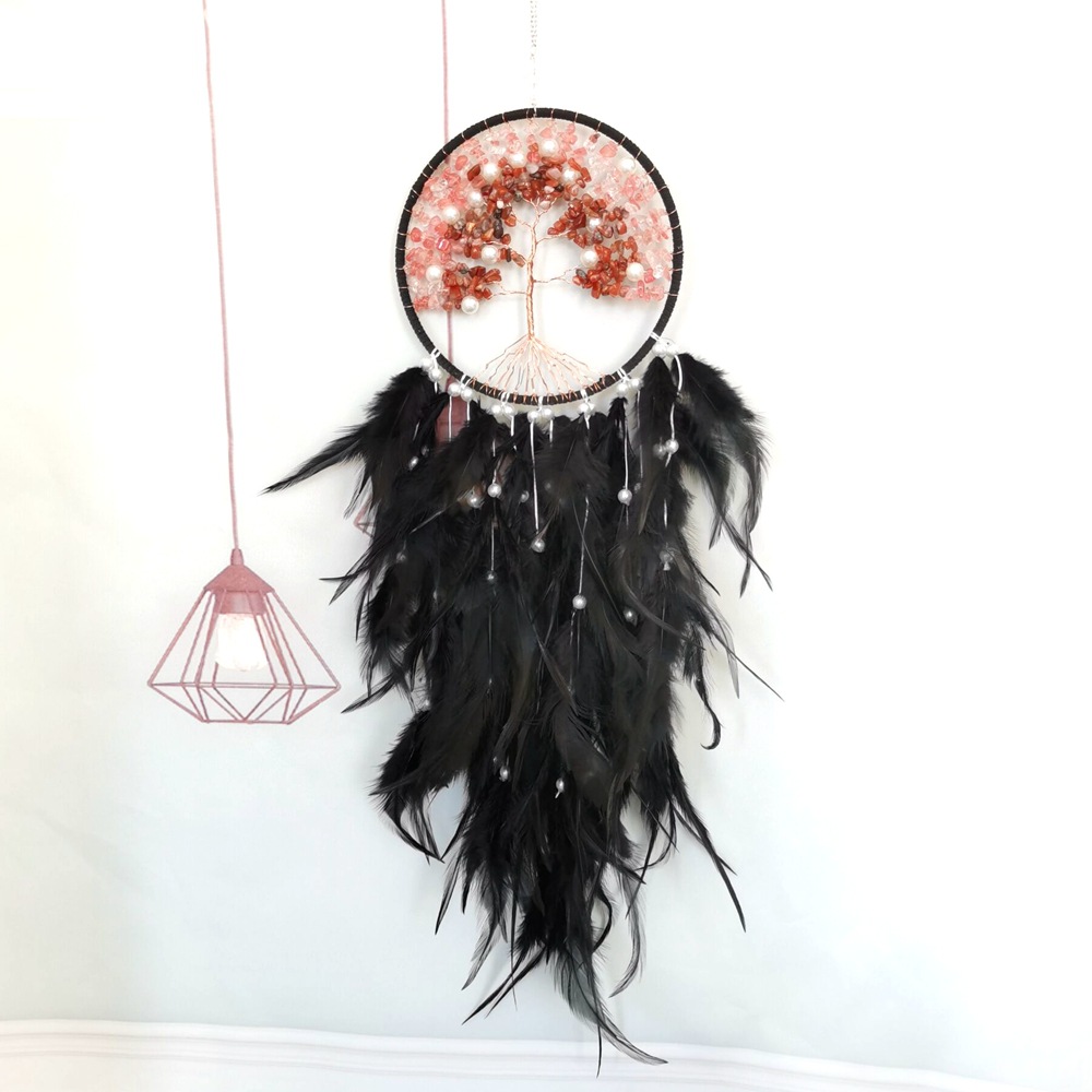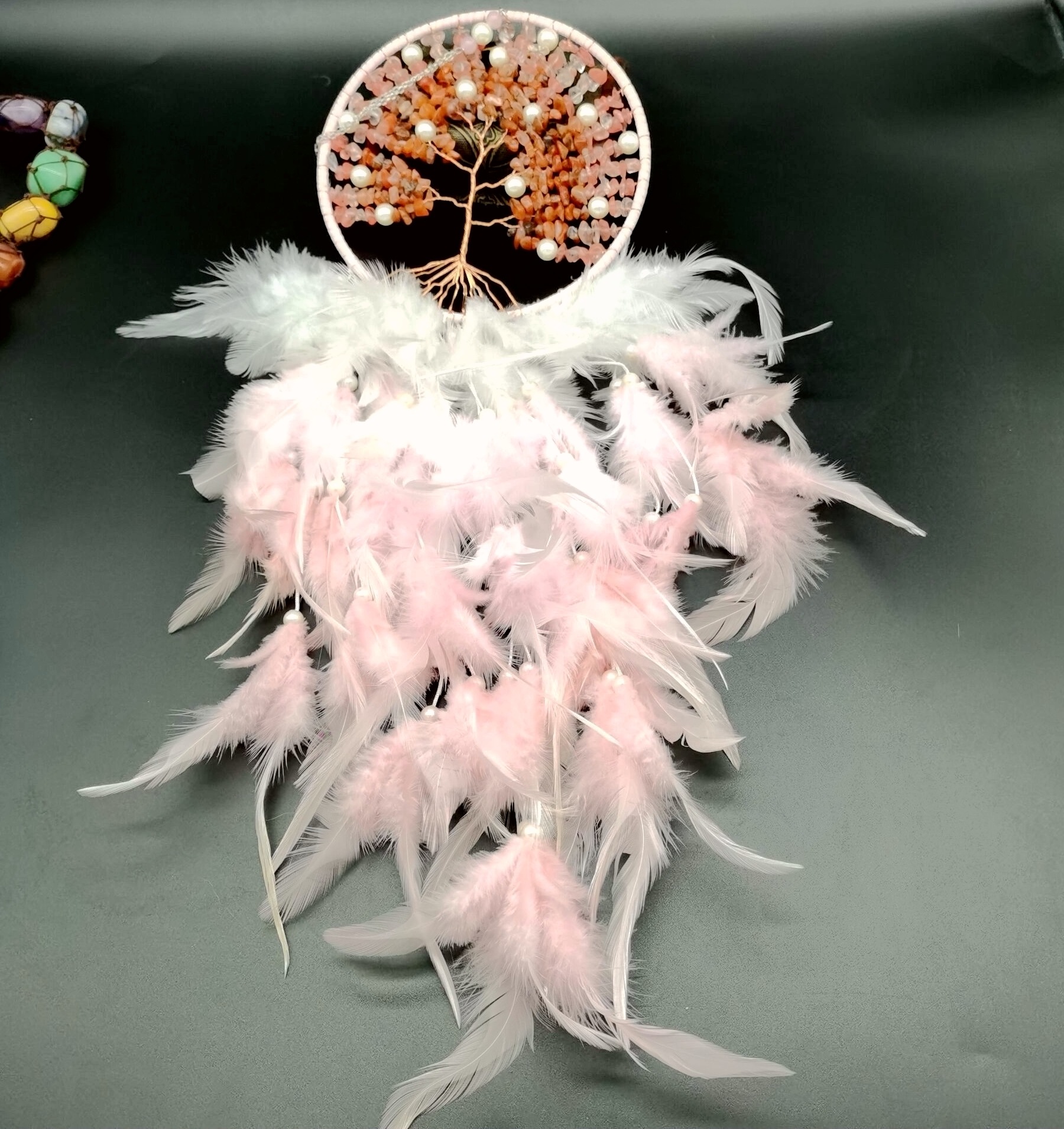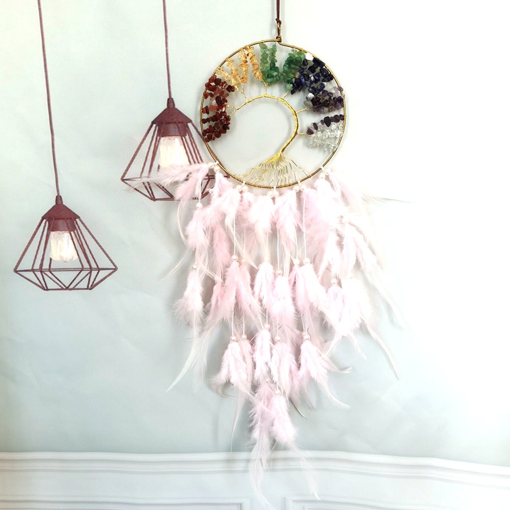 亚马逊捕梦网粉色生命之树碎石风铃吊饰学生生日毕业礼物