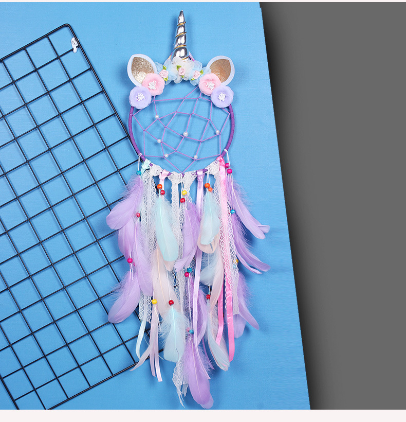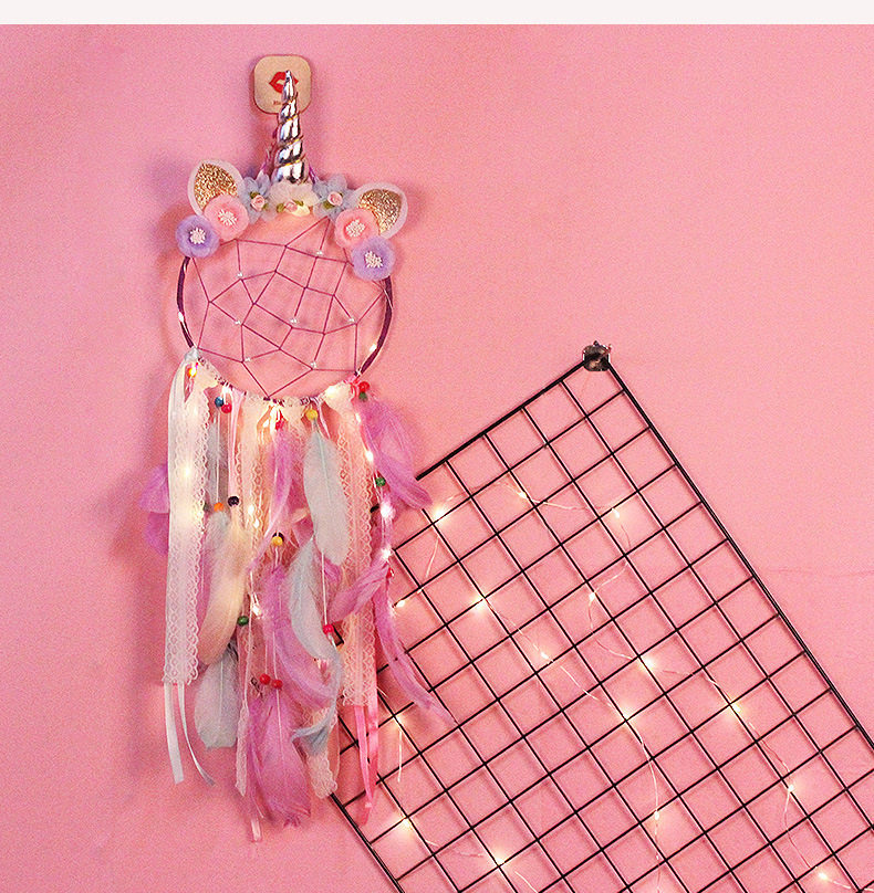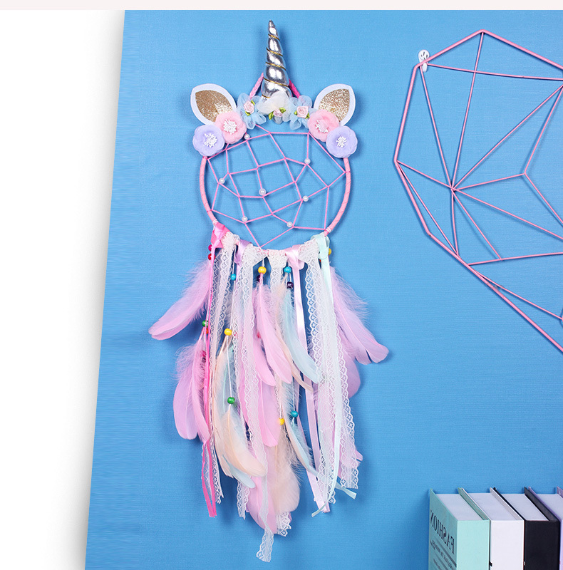 新款创意印第安羽毛蕾丝独角兽捕梦网可爱少女心房间装饰生日礼物